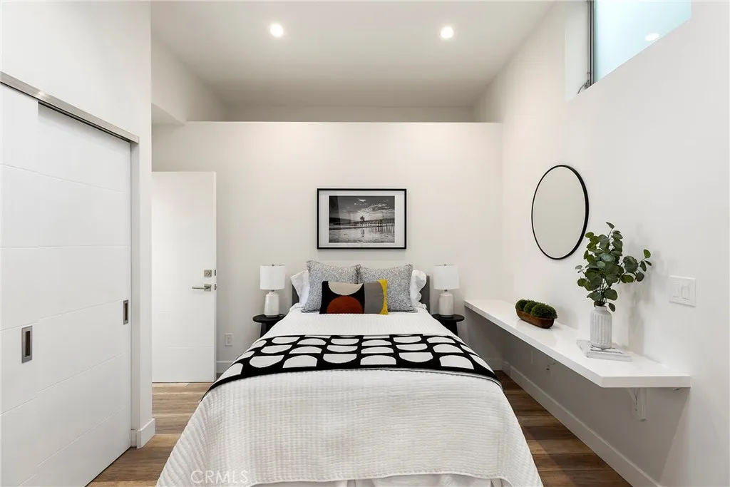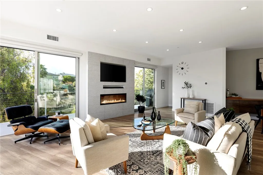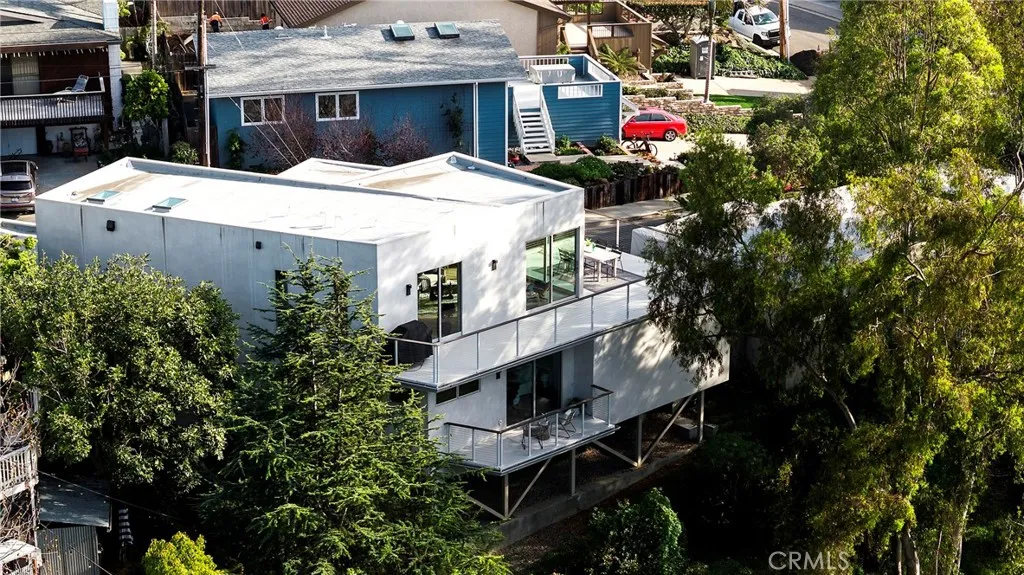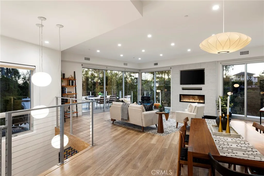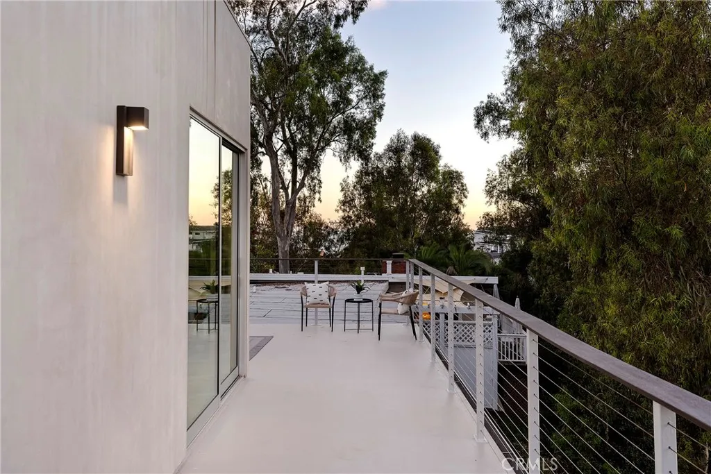 Tucked away on one of Southwest’s most special horseshoe streets, this ocean-view home offers true serenity. Newly-built in 2017 from the ground up overlooking the lush canyon beyond, this offering is among the finest recent opportunities. Located between the Riviera District & Lasuen neighborhoods, the location couldn’t be better. Surrounded by mature trees, the home offers a level of privacy rare to come by this close to the beach. Strategically designed, this custom-build offers a sophisticated level of contemporary architecture with ocean views from the upper living space. Upon arrival, the front elevation spans an impressive 116’ of frontage with a generous 6,800 SF lot. A dynamic design welcomes you inside to a formal entry. Large windows flood the space with natural light through a custom wrapping wood staircase. On the lower level, the primary suite faces the canyon with its own private deck, a luxurious bathroom, dual sinks, walk-in shower, & spacious walk-in closet - very serene & private on the canyon. Down the hallway, two bedrooms share a modern Jack&Jill bath with dual sinks, privacy toilet, & walk-in shower. Beyond that, a full suite with elevated ceilings, (ADU potential: separate access, loft, futured for kitchenette or laundry). Up an artistic staircase leads to modern & open living spanning the kitchen, dining, & family room, all framed by walls of glass, high ceilings, & wide plank flooring. A European-inspired kitchen features stainless appliances, a large island with bar seating, walk-in pantry, balcony, skylights & picture window to the crisp ocean view down the canyon. Flow-through dining offers major flexibility with space for a massive dining table & unique custom built-in wood storage console. Light-filled living with a tiled fireplace anchoring the room. 8’ stacking window walls lead to a spacious deck with ocean views through the trees creating perfect indoor-outdoor flow. Mature trees screen the rear side of the deck & create an lush outdoor setting. Other values: no HOA, zoned A/C, groovy Porcelanosa tile, wired shades, finished garage with interior access, refreshed landscaping, high-end fixtures, indoor laundry, & an outdoor shower. Walk to nearby ‘locals’ favorite’ beaches, take the 2.5 mile beach trail to restaurants, coffee shops, bars, & the iconic SC Pier. A fun bike ride to world-class surf at Trestles. An exceptional opportunity for a newer construction home in one of Southwest San Clemente’s best locations!