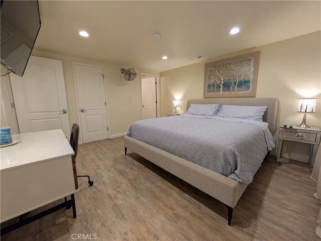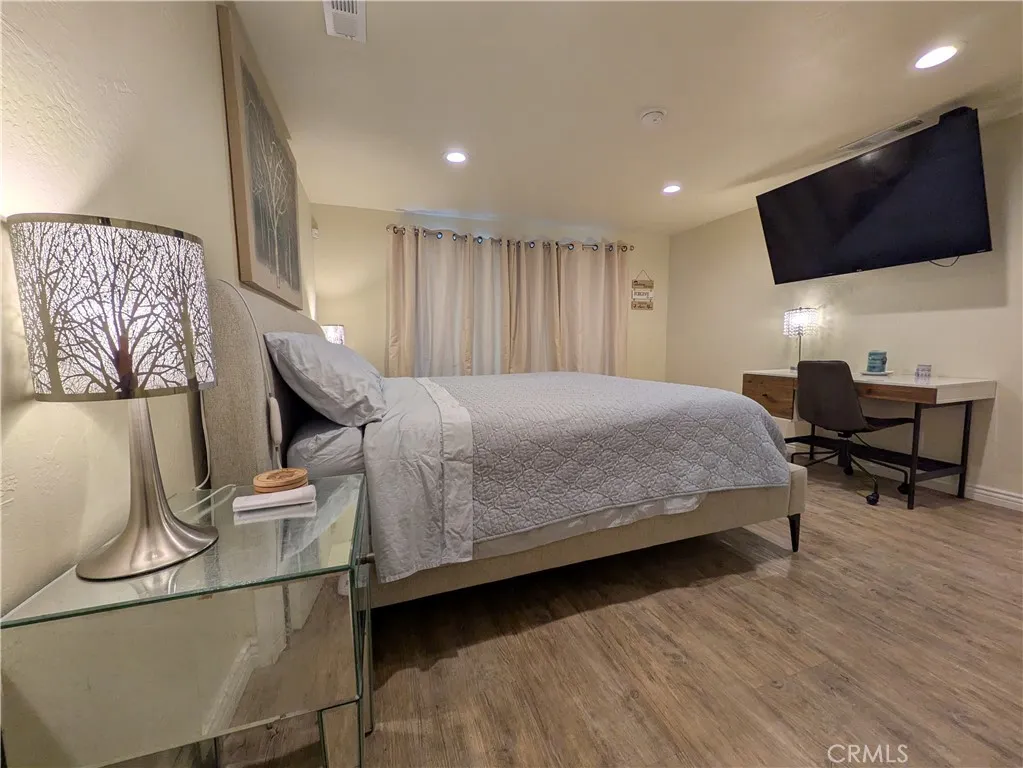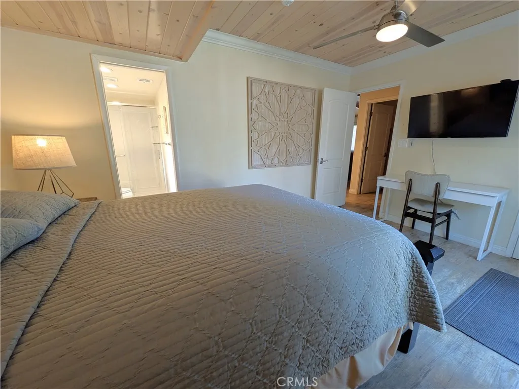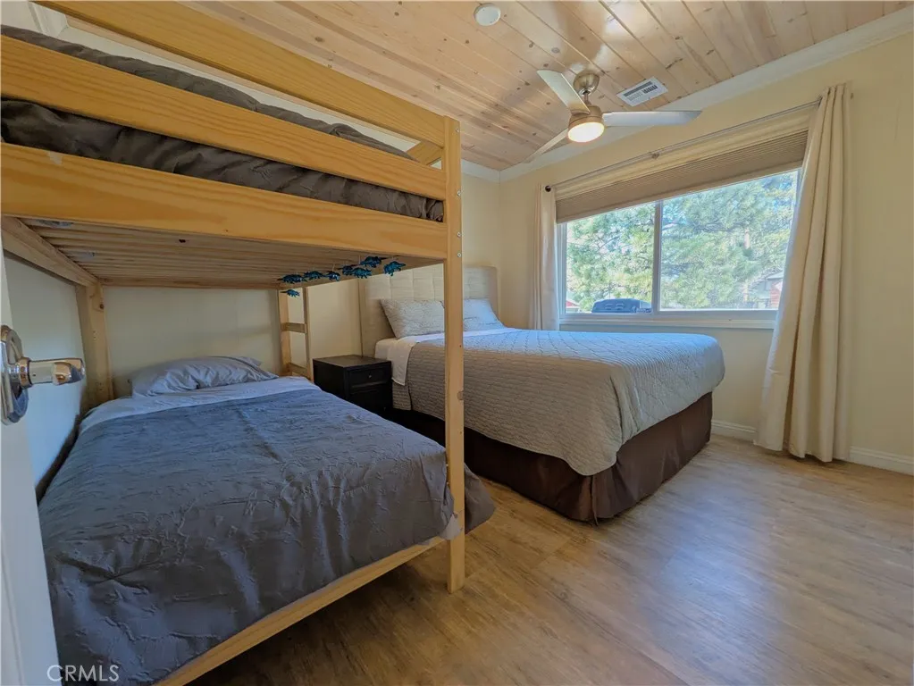 Welcome to your perfect mountain escape in the heart of Big Bear Lake. Ideally located within walking distance to Big Bear Village and the lake, this beautifully remodeled 3 bedroom, 3 bathroom home offers the ultimate blend of luxury, comfort, and convenience. With 1,783 square feet of thoughtfully designed living space, this turnkey property comes fully furnished, including all appliances, making it truly move-in or rental ready! Inside, the home has been completely remodeled throughout and showcases luxury vinyl plank flooring, modern finishes, and a warm mountain aesthetic. The family room is a standout, featuring soaring natural wood ceilings and a stunning wood-burning rock fireplace that creates an inviting atmosphere for relaxing evenings after a day on the mountain. Large windows fill the space with natural light and enhance the open, airy feel. The upgraded kitchen is designed for both everyday living and entertaining, complete with quartz countertops, stainless steel appliances, and ample cabinetry. A spacious full bathroom is conveniently located on the main floor, along with one of two primary bedrooms, offering flexibility for guests or multigenerational living. Downstairs, you will find a second primary bedroom that is tucked away from the rest of the home. This unique space has its own separate entrance and can function as a secure guest suite or private accommodation, adding versatility and rental appeal. A huge bonus room downstairs provides endless possibilities and can be used as a game room, home theater, or additional entertaining space. There is also a large, lockable storage room, perfect for gear, supplies, or owner storage. Outdoor living is just as impressive. Enjoy a large front porch ideal for morning coffee or evening sunsets, and a spacious rear patio featuring a private spa for year-round relaxation. The backyard pavilion includes lighting and electricity, making it perfect for outdoor gatherings, dining, or events. Parking is easy with private parking in front of the home as well as a gated rear driveway. Whether you are looking for your own private mountain getaway or a short-term rental investment, this home checks every box. Its unbeatable location, fully furnished turnkey condition, flexible layout, and exceptional amenities make it a fantastic opportunity in Big Bear Lake.