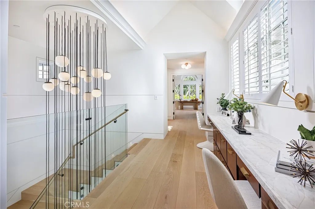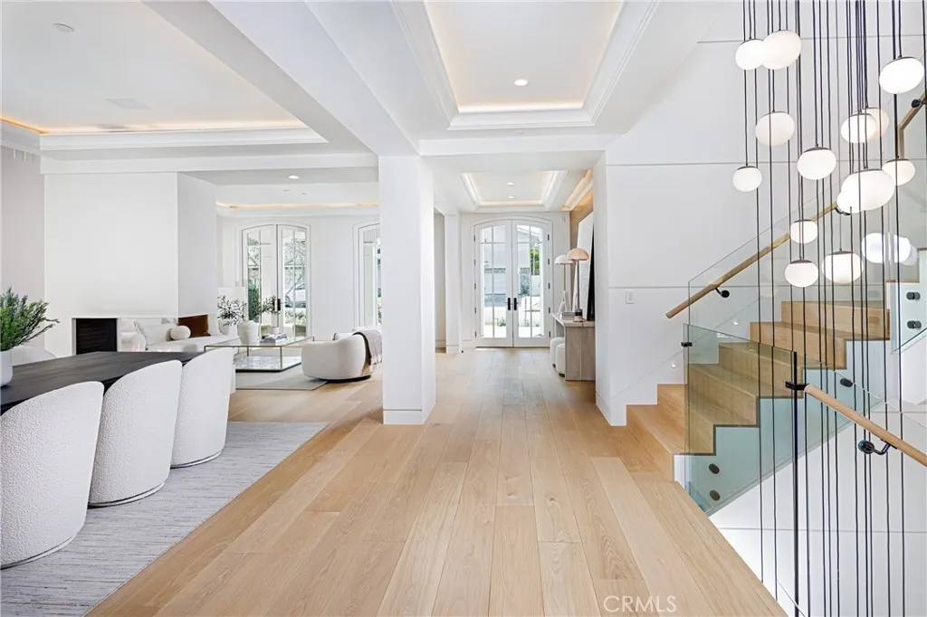 A Rare Architectural Statement in the Port Streets. Quietly commanding in one of Newport Beach’s most coveted neighborhoods, this reimagined contemporary estate has undergone a comprehensive, whole-home remodel, elevating nearly 7,924 square feet through thoughtful design, precision craftsmanship, and elevated material selections. Natural light moves effortlessly throughout the home, anchored by custom-crafted wide-plank white oak flooring, soaring ceilings, and a dramatic three-story glass stairwell crowned with a bespoke chandelier. Walls, plaster, lighting, kitchens, and baths have all been meticulously redesigned, resulting in interiors that feel refined, cohesive, and timeless rather than trend-driven. The chef’s kitchen is sculptural yet highly functional, appointed with Viking appliances, expansive stone surfaces, and sleek custom cabinetry. Accordion glass doors open to newly designed outdoor spaces, where Garden Studio–designed landscaping and completed pool engineering allow the next owner to finalize a resort-style setting tailored to their vision. The 2,500-square-foot lower level is immersive and unexpected, offering a glass-enclosed gym, executive office, multipurpose or playroom, and a fully upgraded private home theater with new equipment, custom velvet seating included, stadium tiers, and a performance stage. A two-story exterior fountain adds a dramatic architectural element and a sense of arrival. Upstairs, four en-suite bedrooms provide privacy and volume, including one with a hidden “secret room.” The primary suite is a private retreat with fireplace, deck, custom built-ins, and a fully reimagined spa-inspired bath featuring a steam shower, oversized soaking tub, and a customized walk-in closet with illuminated rods. Additional enhancements include whole-house reverse osmosis water filtration, advanced air purification, a comprehensive security system, and a generator, reinforcing the home’s focus on comfort, wellness, and modern resilience. Set on a 9,222-square-foot lot in the Port Streets, this home offers something rarely available: true scale, fresh design, and immediate livability. No other current offering in the neighborhood or Newport Beach combines this square footage, condition, and value. This is not a renovation for resale. It is a considered architectural reset, designed to be lived in, experienced, and remembered.