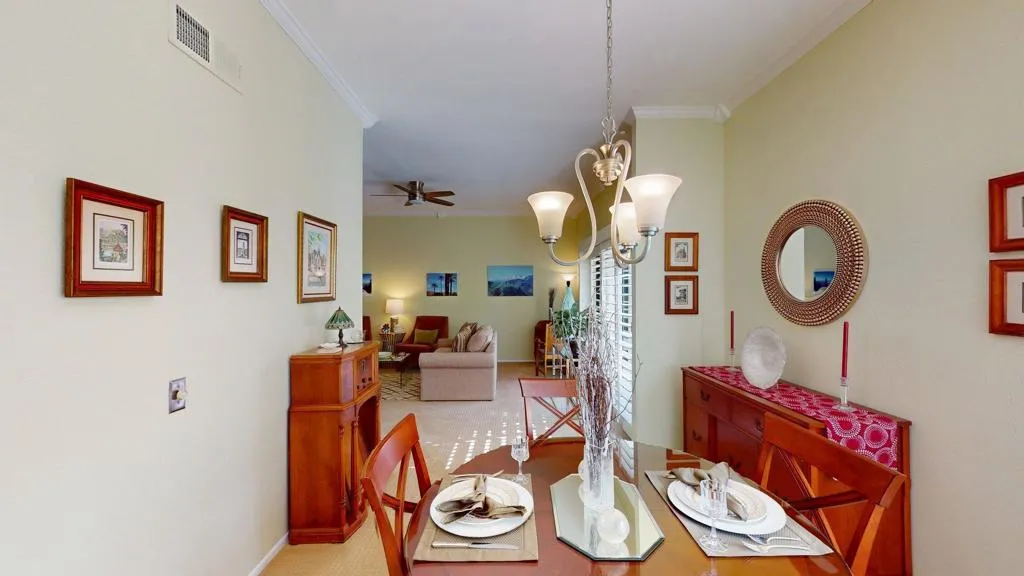 72339 Canyon Lane - Where Palm Desert Elegance Meets Everyday LuxuryDiscover your meticulously maintained sanctuary in the coveted Somerset South community, where hillside living and breathtaking mountain views define the authentic Palm Desert experience. This pristine residence offers sophisticated comfort and prime location--just moments above legendary El Paseo.A Home Designed for Desert LivingStep inside to discover a thoughtfully upgraded interior where every detail shines. The coveted south-facing patio captures stunning west-facing mountain views, flooding your home with natural light and the warm desert glow that makes Palm Desert living special. Soaring 9-foot ceilings create an airy ambiance, while elegant crown molding and custom plantation shutters throughout add refined sophistication.The open-concept living and dining areas flow seamlessly--ideal for hosting intimate gatherings or enjoying quiet evenings with mountain vistas as your backdrop. The inviting kitchen features gleaming granite countertops, stainless steel appliances, and generous storage.Front and rear patios provide versatile retreats for morning coffee or sunset cocktails surrounded by serene desert beauty. The two-car attached garage adds everyday convenience to this turnkey residence.The Somerset AdvantageSomerset South elevates desert living with 11 sparkling community pools and spas nestled within lush, rolling greenbelts. Stay active with 3 tennis courts and 4 pickleball courts, or stroll the beautifully landscaped grounds of this distinguished hillside community.Steps to El PaseoYour location is extraordinary. Positioned just above world-renowned El Paseo--the 'Rodeo Drive of the Desert'--you're minutes from over 300 luxury boutiques, acclaimed restaurants, and celebrated galleries. Championship golf, the McCallum Theatre, and year-round festivals complete your Palm Desert lifestyle.Immaculate & ReadyThis pre-loved home has been impeccably maintained as a smoke-free, pet-free sanctuary--ready for you to unpack and start living the Palm Desert dream from day one.This is the home you've been waiting for. Welcome to Somerset living at its finest.