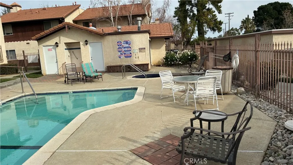 this gorgeous condominium is located in an admirable 55+ gated community in the heart of Banning. Designed for easy living, this corner bottom unit is beautifully maintained and offers a relaxed lifestyle with on site amenities. Step inside to a bright and spacious living area, where large windows fill the space with natural light. The open-concept layout seamlessly connects the living room, dining area, and kitchen—ideal for entertaining or enjoying quiet evenings at home. This home features two well-sized bedrooms, each offering generous closet space and peaceful views of the surrounding greenery. Both bathrooms are clean and functional, serving both comfort and accessibility. Enjoy your morning coffee or an evening glass of wine on the private patio, surrounded by a serene, landscaped setting. On warm days, take a refreshing dip in the community’s sparkling pool—a true oasis just steps from your door. Additional features include: A detached 2 car garage for ample parking and storage, community laundry facilities for added convenience, close proximity to I-10, making travel and errands effortless. Whether you're relaxing poolside, connecting with friendly neighbors, or exploring nearby shops and restaurants, this condo offers the perfect blend of tranquility and accessibility. Experience the best of low-maintenance, resort-style living in this welcoming 55+ community.