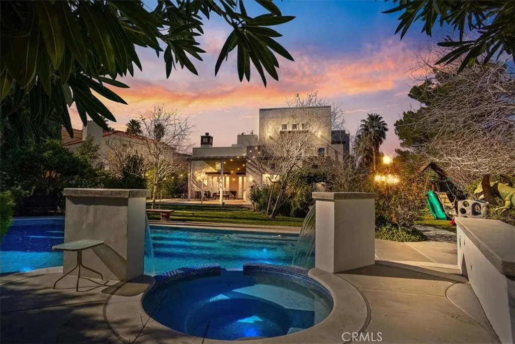 A Truly Spectacular Custom-built Home located in the Prestigious Gated Community of Godde Hill Estates with an Elevated Lifestyle of Luxury & Design. Set on a nearly Half-Acre lot with Breathtaking Landscaped Grounds, which are a Sanctuary of Beauty and Function. The Curb Appeal welcomes you with Striking Architectural Presence. This Exceptional Home offers approximately 4,200 sqft of Refined Living Space with four Spacious Bedrooms, each Featuring its own Private en-suite Bath, and a Three-car Garage with an Extended Driveway. Enter into the Grand Foyer for an Unforgettable First Impression, Gleaming Floors, an Exquisite Crystal Chandelier Suspended above the Custom Spiral Wrought Iron Freestanding Staircase. Additional Crystal Chandeliers Enhance the Home’s Elegant Ambiance, while Recessed Lighting throughout provides a clean, modern glow. The thoughtfully Designed open-concept floor plan features both a Formal Living Rm, Formal Dining Rm and a Family Rm which Flow Effortlessly beneath Voluminous Ceilings, Ideal for Grand-scale Entertaining and two Elegant Fireplaces. Rich finishes include Marble and Wood flooring. A Gourmet Kitchen with Granite Countertops, Stainless Steel Appliances, a Commercial-Style Range with Hood, Built-in Refrigerator/Freezer, Center Island and a Breakfast Room. A Desirable Main-level Bedroom with a Full Bathroom, complete with its own Patio and Separate entrance—ideal for Guests or Multi-Generational living. The luxurious Primary Suite serves as a Private Retreat with a Balcony over looking the Pool. The Master Bathroom features Dual Sinks, a Separate Soaking tub and Steam Shower, a Spacious Walk-in Closet with Custom built-ins. Additional Features in this Home include, Several Balconies off of the Bedrooms, Wet bar, Upstairs Laundry Room, Large Pantry and Plenty of Storage. Also, Five Hardwired Ring Cameras including the Front Door Camera and Doorbell, Wireless Wifi Controlled Garage Doors, Wireless Wifi controlled Pool System and Nest Wireless Wifi A/C and Heating System. Entertain year-round in the Resort-style Sparkling Pool & Spa with Waterfall features and and a Waterslide. This Backyard is Designed for both Relaxation and Entertaining. Several Expansive Patio areas, Lush Landscaping, a Built-in BBQ, and Decorative Lighting, a True Private Oasis. This Remarkable Custom Estate blends Elegance, Comfort, and Timeless Design in one of Antelope Valleys most Sought-after Gated Communities.