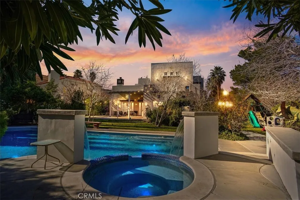 A Spectacular Custom-built Home in the Prestigious Gated Community of Godde Hill Estates with an Elevated Lifestyle of Luxury. Set on a nearly Half-Acre lot with Breathtaking Landscaped Grounds, a Sanctuary of Beauty. The Curb Appeal welcomes you with Striking Architectural Presence. This Exceptional Home offers approximately 4,200 Sq Ft of Living Space with four Spacious Bedrooms (there is a Bonus Room with a closet that can be a 5th Bedroom or Office) each Featuring its own Private En-suite Bath, and a Three-car Garage with an Extended Driveway. Enter into the Grand Foyer for an Unforgettable First Impression, Gleaming Floors, an Exquisite Crystal Chandelier Suspended above the Custom Spiral Wrought Iron Freestanding Staircase. Additional Crystal Chandeliers Enhance the Home’s Elegant Ambiance, while Recessed Lighting throughout provides a clean, modern glow. The thoughtfully Designed open-concept floor plan features both a Formal Living Rm, Formal Dining Rm and a Family Rm which Flow Effortlessly beneath Voluminous Ceilings, Ideal for Grand-scale Entertaining and two Elegant Fireplaces. Rich finishes include Marble and Wood flooring. A Gourmet Kitchen with Granite Countertops, Stainless Steel Appliances, a Commercial-Style Range with Hood, Built-in Refrigerator/Freezer, Center Island and a Breakfast Room. A Desirable Main-level Bedroom with a Full Bathroom, complete with its own Patio and Separate entrance—ideal for Guests or Multi-Generational living. The luxurious Primary Suite serves as a Private Retreat with a Balcony over looking the Pool. The Master Bathroom features Dual Sinks, a Separate Soaking tub and Steam Shower, a Spacious Walk-in Closet with Custom built-ins. Additional Features in this Home include, Several Balconies off of the Bedrooms, Wet bar, Upstairs Laundry Room, Large Pantry and Plenty of Storage. Also, Five Hardwired Ring Cameras including the Front Door Camera and Doorbell, Wireless Wifi Controlled Garage Doors, Wireless Wifi controlled Pool System and Nest Wireless Wifi A/C and Heating System. Entertain year-round in the Resort-style Sparkling Pool & Spa with Waterfall features and and a Waterslide. This Backyard is Designed for both Relaxation and Entertaining. Several Expansive Patio areas, Lush Landscaping, a Built-in BBQ, and Decorative Lighting, a True Private Oasis. This Remarkable Custom Estate blends Elegance, Comfort, and Timeless Design in one of Antelope Valleys most Sought-after Gated Communities.