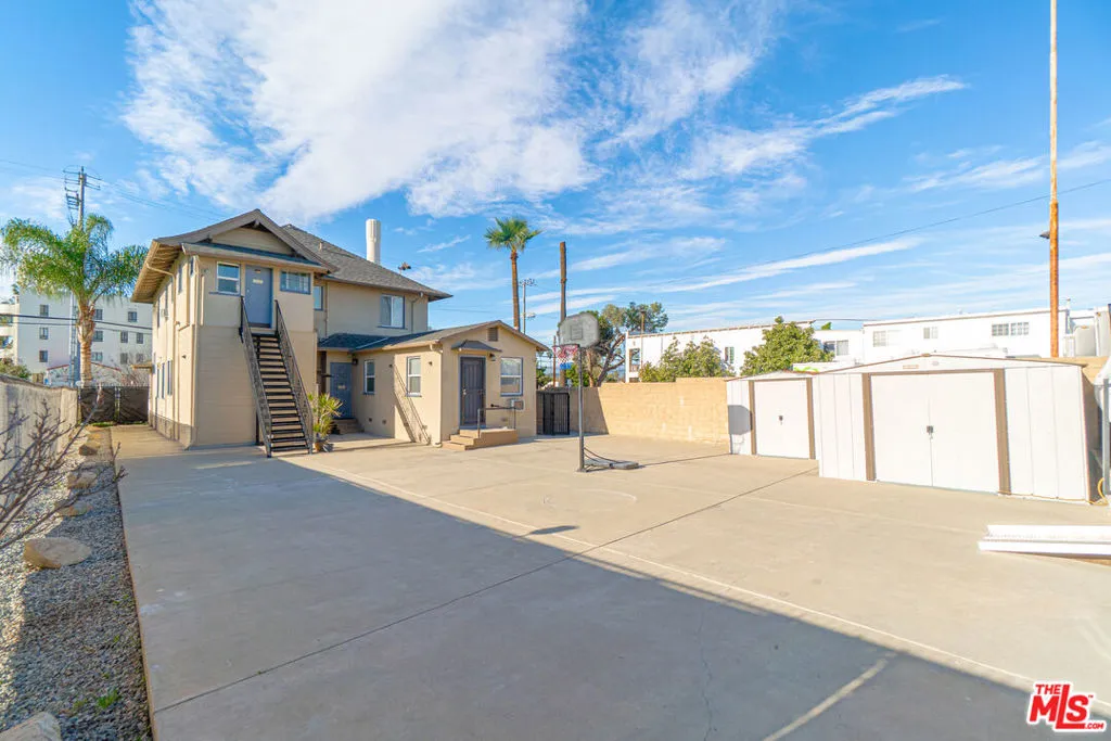 Perfectly positioned in the heart of historic Boyle Heights, this beautifully maintained, turnkey residence offers a rare combination of modern comfort and incredible investment potential. Located just one block from Hollenbeck Park and minutes from the vibrant pulse of Downtown Los Angeles, this versatile property currently serves as a spacious single-family residence but can easily be converted back to its permitted duplex use. Enjoy exceptional curb appeal with a manicured front lawn and a double-wide entrance that opens to a stunning deck, ideal for sunset viewing. Inside, the home radiates pride of ownership with a refreshed interior featuring new flooring and paint completed just two years ago. The ground floor offers an expansive layout, including an oversized living area, a large dining room, and a primary bedroom. Upstairs, the second floor provides three additional bedrooms each with its own walk-in closet along with a secondary kitchen and a massive attic perfect for extra storage. The sale includes two metal storage sheds, and a comprehensive interior and exterior security system. Access is both easy and secure via three alley gates, including a central electronic gate for convenient entry. The property features two versatile garage spaces: one converted into a climate-controlled office/studio and the other serving as a functional work room. The rear yard is fully cemented and RV-friendly, providing a low-maintenance space perfect for hosting large family events. The property is zoned LARD1.5, offering the potential to build two additional units and providing incredible future value. This is a premier opportunity for savvy investors and multi-generational families to own a versatile piece of Los Angeles history (buyer to verify development potential with the City).