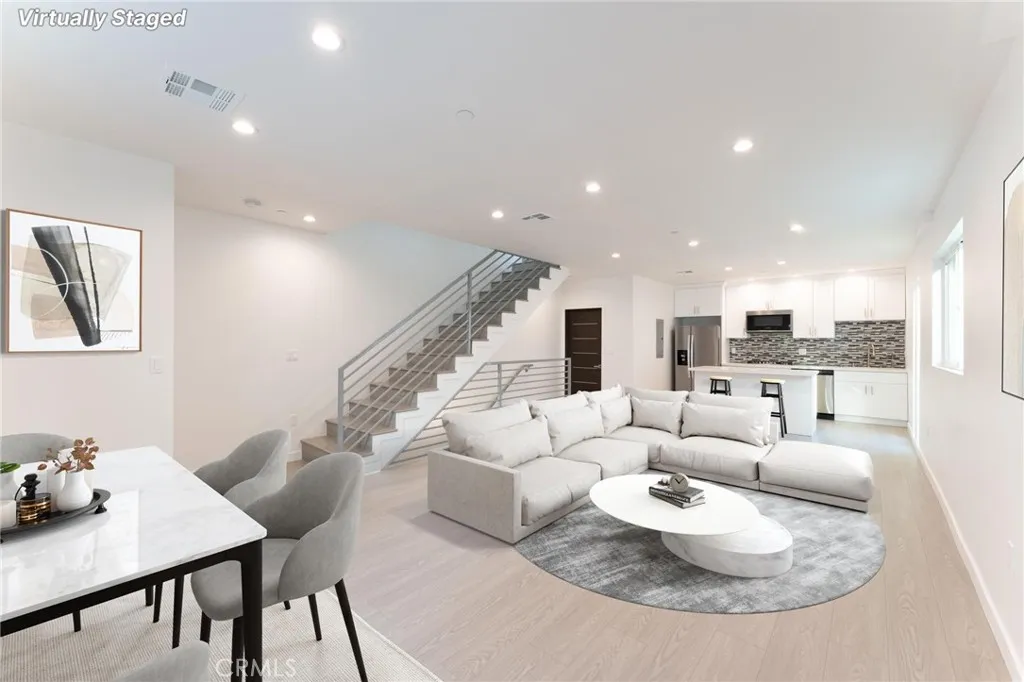 Special Offer: One month free rent (a $4,500 value) for qualified tenants. Welcome to this stylish and energy-efficient 2-year-old townhouse featuring 4 bedrooms, 4 bathrooms, and over 1,600 sq ft of well-designed living space. Enjoy the open floor plan that connects the kitchen, dining, and living areas—perfect for entertaining. The modern kitchen includes stainless steel appliances, sleek finishes, and plenty of counter space. Waterproof laminate flooring runs throughout for a clean, durable look. Eco-conscious features include solar panels to help lower electric bills, plus smart home upgrades like free Wi-Fi, a security camera, and a smart doorbell. Additional highlights: 2-car garage. Prime location with easy access to the 405, 101, 134, and 5 freeways. Experience modern living with comfort and convenience—schedule your showing today!
