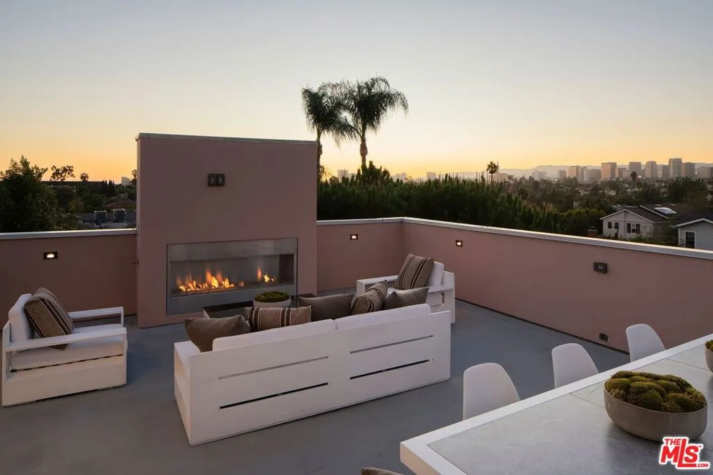 Discover the elegance of this recently-built architectural contemporary, with bright, sunlit interiors, and versatile indoor and outdoor spaces ideal for entertaining. Step into a welcoming foyer, adjacent to a guest suite and powder room, where high ceilings and hardwood floors meet expansive walls of windows. This flows into a spacious great room, highlighted by an open kitchen equipped with premium Miele appliances. Disappearing glass doors connect seamlessly to a private backyard featuring a pool and spa. The upper level, with multiple balconies, includes a generous primary suite with a large walk-in closet and luxurious en-suite bathroom, along with two additional well-appointed bedrooms, each with its own private bath. The lower level offers a light-filled basement with a family room, home theater, wine room, laundry area, storage space, and two more bedrooms with bathroomsperfect for family or guests. The home also boasts a convenient elevator for easy access. Atop it all is an expansive roof deck, complete with an outdoor kitchen and fireplace, offering stunning 360-degree views of Century City, the Wilshire Corridor, and Santa Monica. This gated property includes a two-car garage and is situated in a desirable neighborhood with close proximity to Cheviot Hills Park, Rancho Park Golf Course, and the Century City shopping mall.