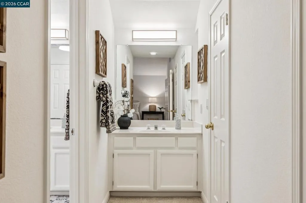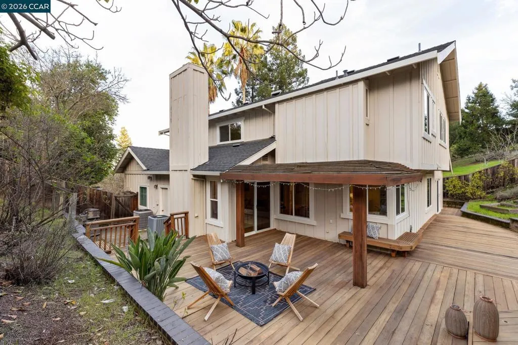 Generously sized home with comfortable living areas, soaring ceilings and fabulous primary retreat! (with Views as well!) This court- appointed home offers the best of both worlds: the privacy of a court, with proximity to town + the highway! This lovely home has been freshly updated & is ready for YOU! Double doors welcome you into the formal living room where vaulted ceilings & a gas-starter fireplace await. Swing around the stairwell & you're presented with the kitchen/dining nook/family room area: all cozy, open to one another & delightfully presented. Hardwood floors grace this place, high end lighting from Walnut Creek Lighting Co & Anthropologie illuminate it just so. A first floor bedroom w/ ensuite bath is the ideal at-home office or guest bedroom. Meander upstairs & you'll find the primary bedroom suite: a thoughtfully planned room with (more!) vaulted ceilings, massive walk-in/walk-through closet AND... a large ensuite bath w/ new gorgeous tile floors, soaking tub overlooking the backyard and stall shower. Hall bath also features new tile floors, and new cozy, smells-amazing carpet can be enjoyed throughout this home as well. A 3 car garage means you can park cars AND set up a work bench/gym here! Prime location, just 6 miles to Highway 24 + 1.8 miles to Highway 680!