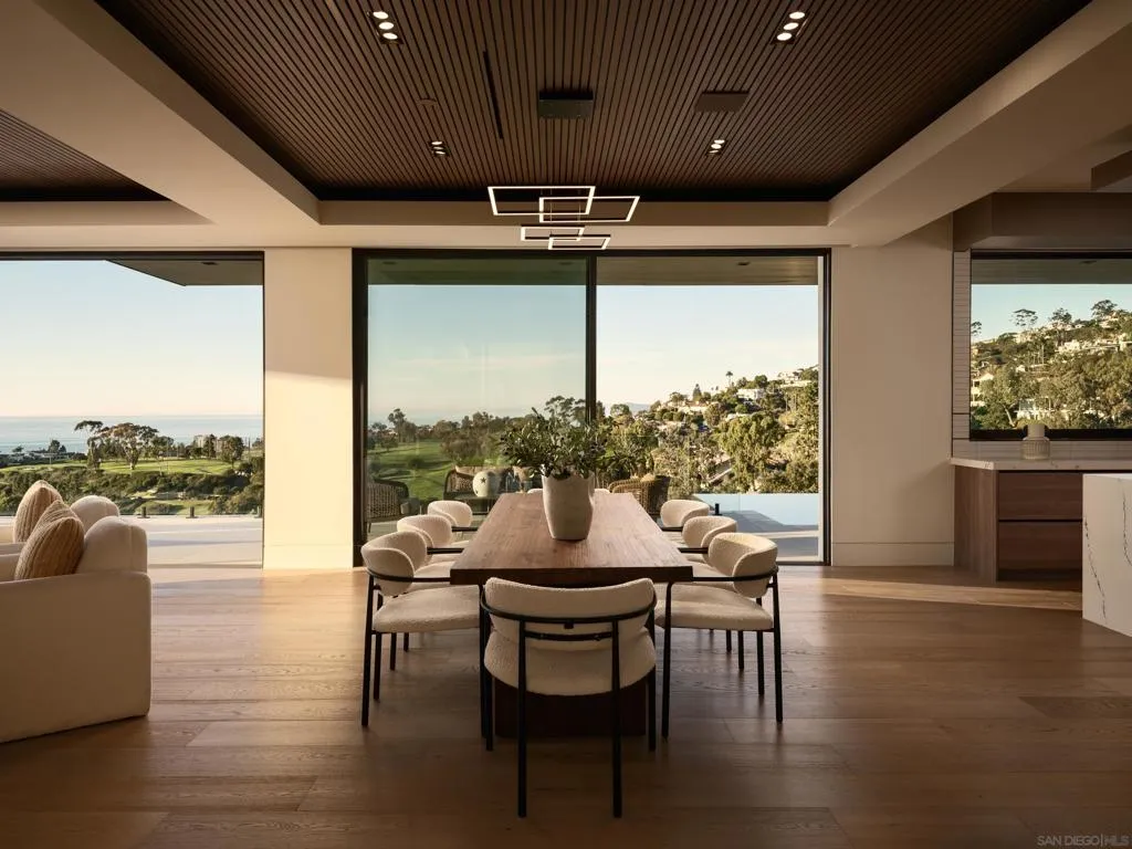 Perched on a premier site within La Jolla’s coveted Muirlands enclave, this newly built contemporary estate is an architectural study in elevation, light, and privacy. From its commanding position, the residence captures sweeping, uninterrupted views of the Pacific Ocean, rolling golf greens, and the city skyline, forming a dramatic backdrop that defines every living space. The home is composed around a highly intentional layout, balancing grand volume with refined intimacy. Seven private bedroom suites, each with its own spa like bath are thoughtfully distributed for discretion and flexibility, including dual primary suites on separate levels, ideal for buyers seeking both privacy and hosting versatility. A bespoke interior palette of custom materials and clean modern lines underscores the home’s architectural clarity. At its center, a chef’s kitchen appointed with Wolf and Sub-Zero anchors expansive living spaces wrapped in walls of glass, dissolving boundaries between interior and horizon. Designed for seamless living, the residence includes elevator access, dual laundry rooms, and a substantial multi-vehicle garage, all integrated without compromise to form or function. Outdoors, the property unfolds as a private coastal retreat, where an infinity edge pool, fire pit, and outdoor kitchen hover above the landscape, curated for elegant entertaining and complete seclusion. With additional guest and entertainment spaces and a setting of rare prominence, this is a globally relevant offering, an estate defined by bold architectural imagination, exceptional views, and the quiet confidence of true luxury. Opportunities of this distinction in the Muirlands are exceedingly rare.