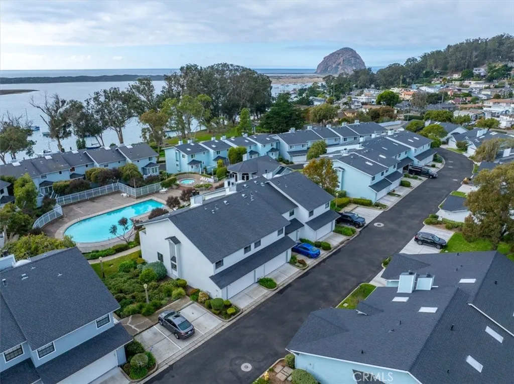 Welcome to resort-style living in Morro Bay's desirable Bayshore Village! This beautifully remodeled two-level 3-bedroom, 2.5-bath condo offers 1,665 sq ft of sophisticated coastal living in a special end unit on a private road. The main level features an open floor plan with a super cozy living room with its own fireplace flowing seamlessly into the updated Craftsman-style kitchen and dining area. The kitchen boasts high-end appliances, custom cabinetry, and granite countertops, while engineered flooring flows throughout the main level and fresh new carpeting graces the second floor. Updated bathrooms with luxurious travertine tile accents add elegant touches throughout. Upstairs, retreat to the luxurious primary bedroom with a gas fireplace, private balcony, en suite bath, and walk-in closet—the perfect spot to enjoy your morning coffee while listening to the birds and taking in pool views with peekaboo glimpses of the bay and Morro Rock. Two additional comfortable bedrooms on the same level share a bathroom, and an upstairs laundry room adds convenience. The attached 2-car garage offers direct interior access to the kitchen for effortless unloading. Enjoy the heated spa, clubhouse, and professionally maintained grounds. Located just off Main Street and adjacent to the bay and park, you're moments from waterfront dining, shopping, and all that Morro Bay has to offer. Turn-key and ready for you to move right in!
