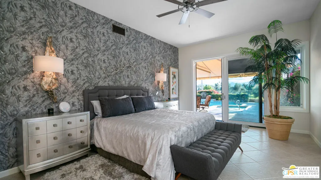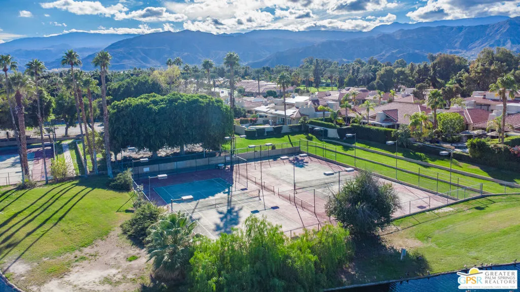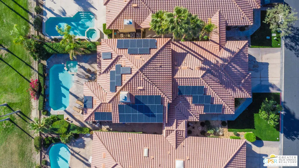 Nestled within the well-maintained grounds of Rancho Mirage Country Club, this four-bedroom residence offers a thoughtful blend of space, comfort, and setting. Surrounded by manicured fairways and mountain views, the home enjoys a quiet position within the community, where mature landscaping and maintained grounds create a sense of privacy and order. Inside, vaulted ceilings and clean lines provide openness without excess. Natural light flows through upgraded Pella windows and doors, connecting the interiors to the surrounding landscape. A redesigned fireplace anchors the main living area, and surround sound in the den adds a practical touch for everyday living. The home has been carefully updated with long-term efficiency in mind. A fully owned 47-panel Hyundai solar array producing approximately 14.1 kW supports energy performance, complemented by dual American Standard HVAC systems. The garage is air-conditioned with a Mitsubishi split system, offering added flexibility for storage or workspace needs. The property is also hardwired for a security system. Outdoor living centers around a newly resurfaced pool supported by a Pentair high-efficiency pool pump, with power-operated retractable awnings providing shade and comfort throughout the year and offered furnished for a smooth transition, whether as a full-time residence or seasonal retreat. With a $950 monthly HOA and access to one of Rancho Mirage's established country club communities, this property presents a well-rounded opportunity for buyers seeking space, efficiency, and a comfortable desert setting.