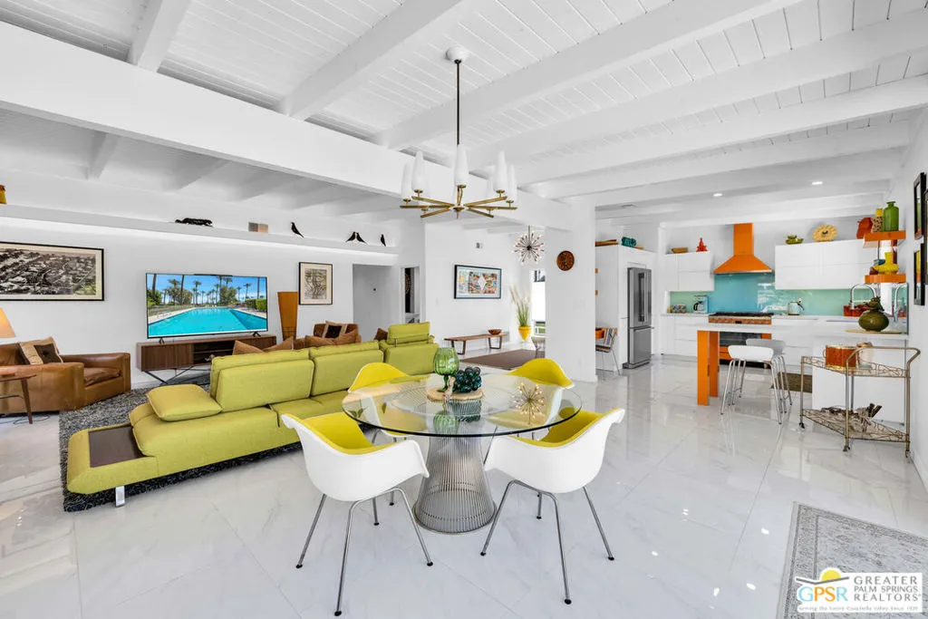 Rare opportunity to own your own piece of history. This meticulously restored 1958 iconic architectural home, designed by William Krisel, offers the perfect blend of Mid Century history coupled with modern elegance. The large open great room features a grand classic fireplace. The vibrant gourmet kitchen offers high end chef's appliances as well as large peninsula seating and a stylish work nook, all open and flowing to the dining area. This home is filled with natural light through the large windows all around. Additionally, there are two large primary suites, both en suite with full baths. The powder room off the great room is a wonderful addition for parties and get togethers. Hang out on the gorgeous patio outdoor living area, surrounded by lush landscape and citrus trees, ideal for evening outdoor dining. The front yard is privately secluded with its own hedge, landscaped with plush astro turf, perfectly inviting for hanging out with family, friends and pets. A two car garage included to house pool toys, bikes, and your dream sports car. Tamarisk Ranchos 1958 by William Krisel is a resort-style community featuring 16 homes around the central pool area, with illustrious views of the San Jacinto mountains. This architectural historical home has been prominently featured on the Palm Springs Modernism Tour, and also carries it's own historical designation, allowing the owner to benefit from the Mills Act. Nestled in Rancho Mirage, the Playground of the Presidents, on Fee land (you own the land), within close proximity to world class shopping, dining, golf, hiking and culture