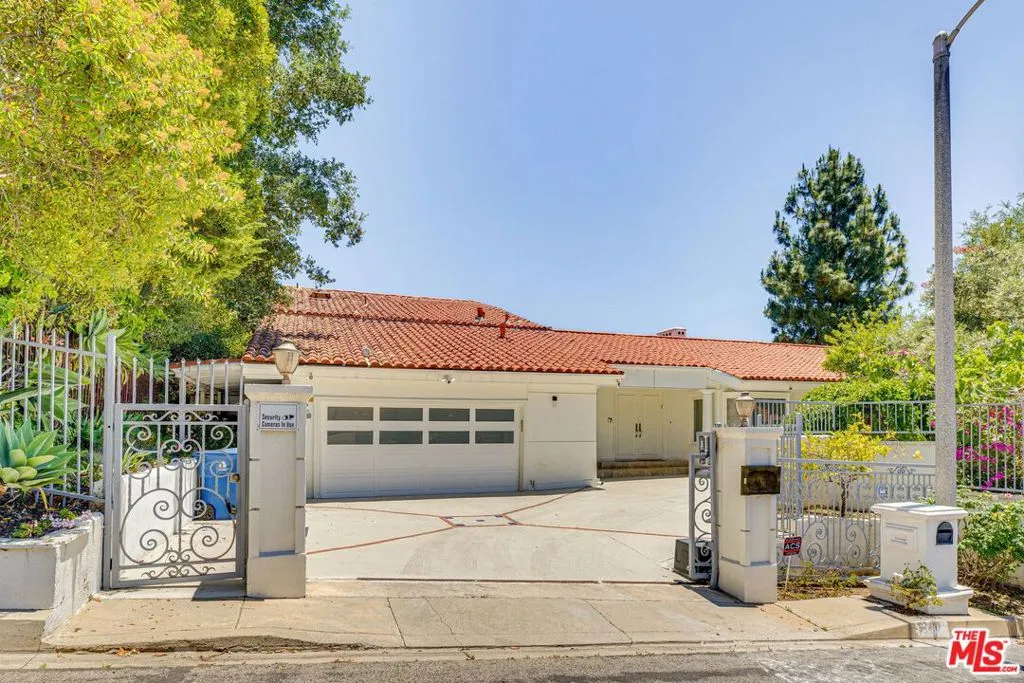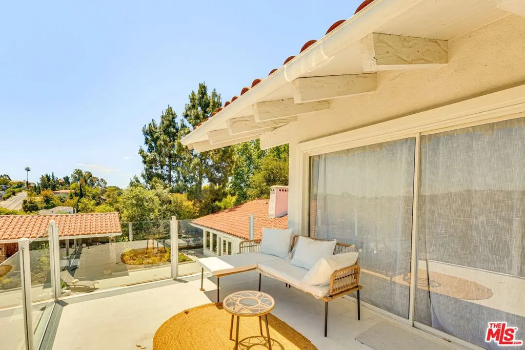 Beautiful upper Bel Air 2-story 4 bed/4.5 bath (furnished or unfurnished) updated Contemporary Spanish with sweeping panoramic canyon, reservoir and gorgeous sunset views. Privately gated front yard and driveway with additional parking leads to double doors that open to formal entry and beautiful open floor plan filled with natural light. Great room with vaulted ceiling, double sided fireplace and wall of windows with 2 sliding doors to entertainer's backyard with pool and spa, large deck and covered outdoor living room and kitchen with with built-in BBQ and granite countertop serving area, 2 refrigerators including wine fridge, ceiling fan and large dining and seating areas. Dining room with fireplace and access to deck, pool and canyon views, opens to modern kitchen with granite countertops and stainless Miele steel appliances including built-in coffee maker, breakfast bar and side yard access. 2 bedrooms down including spacious primary suite with fireplace, walk-in cedar closet beautiful canyon views and ensuite updated full bath with dual basins, separate bath and shower. 2nd bedroom front facing with bay window and bench and ensuite updated bathroom. Upstairs is an additional 2 bedrooms each with ensuite bathroom with a second primary suite option with sliding door to private balcony with views and ensuite updated bathroom. Additional features include contemporary flooring downstairs and hardwood flooring in 2 upstairs bedrooms, central ac/heating, recessed lighting, alarm system, all bedrooms with updated ensuite bathrooms. and inside laundry room. Enjoy entertaining poolside and taking in the tranquil sunset views on one of the finest view streets in Bel Air.