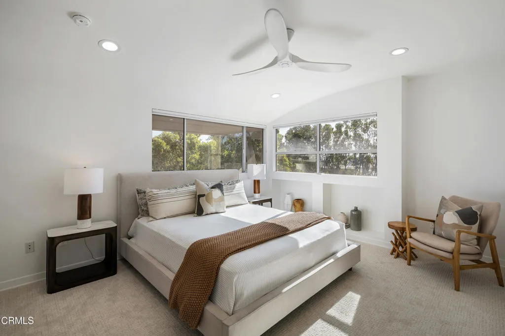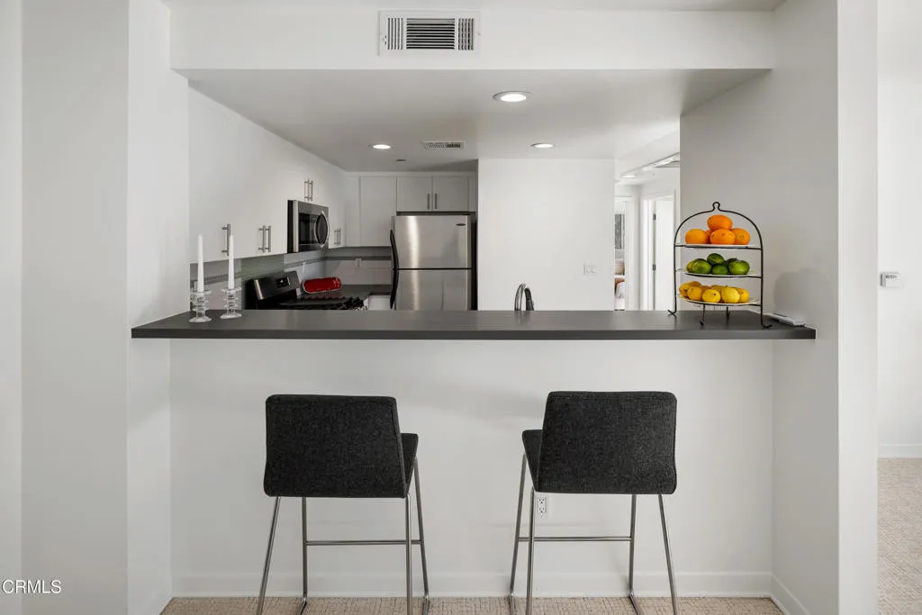 Contemporary Old Town Pasadena Condominium. Pasadena's Coveted location, urban living truly in the center of Old Town Pasadena.Top floor corner unit with Southeast exposure. Watch the Rose Parade from the community 5th floor entertainment deck. Panoramic views of the San Gabriel Mountains and city views are some of the features of this property. No need for a car, there are a number of outstanding restaurants and shops to choose from right outside of your door. A light and bright living room and dining area with recessed lighting, open to the kitchen and a balcony overlooking Green Street.Spacious primary bedroom plus a second bedroom, updated two full baths. New bathroom fixtures and new shower doors in both bathrooms. Kitchen with Caesarstone countertops, newer stove and Bosch dishwasher. New carpet and fresh paint throughout, Newer AC/Heat, washer/dryer, and microwave. The home includes a gated secure 2 car parking spaces. There is a secure street level lobby with intercom entry. Common outdoor spaces and access to the community gym are part of this property.All staging items have been removed from the unit.