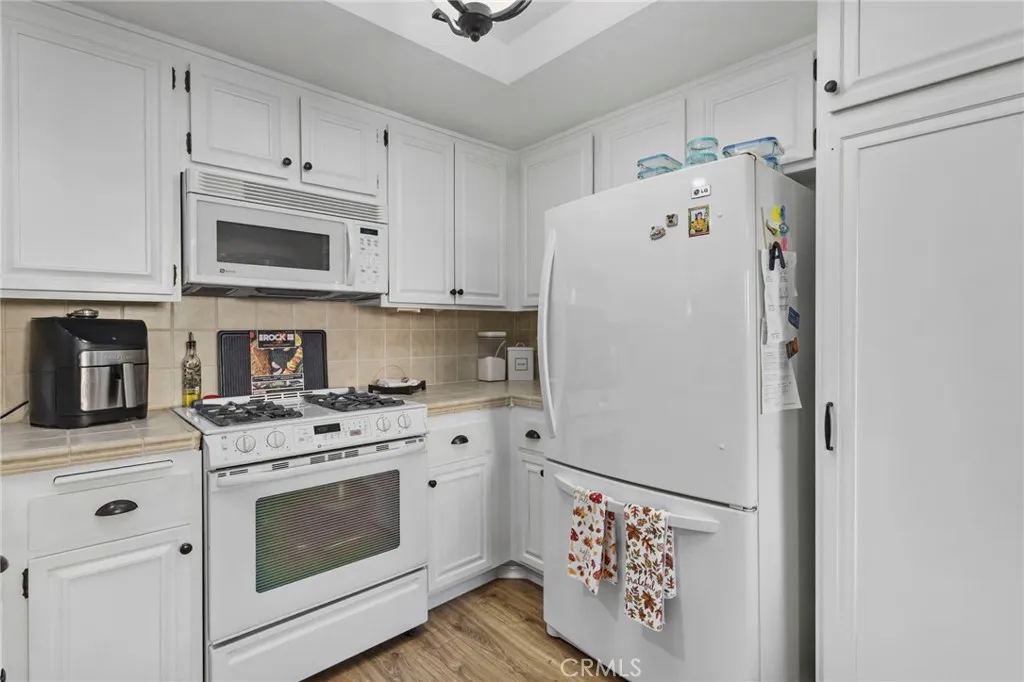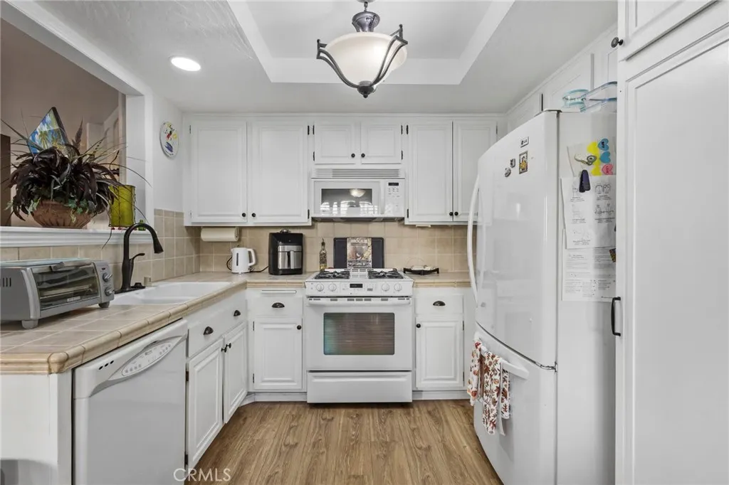 Located in the desirable Westminster Gables' HOA. Come see this charming 2-bedroom, 1.5-bath condo that offers both comfort and convenience. Just minutes from local area markets, shopping plazas, and authentic restaurants. Also, great schools, and easy access to the 22 and 405 freeways. Kitchen is nice and bright with newer beige tile flooring, stylish countertops, great appliances, and recessed lighting. Living room is perfect for cozy days with a fireplace. Home also has Central AC/Heating. The property also features gorgeous laminate vinyl flooring and recessed lighting throughout. Both bathrooms feature updated quartz countertops, newer cabinetry, and a refreshing, beach-inspired design. The main bedroom features a balcony, offering a view of the awesome large green belt areas. Enjoy your private front patio—perfect for barbecues, gatherings, or simply relaxing outdoors. Parking is plentiful with a 2-car garage, 2 additional driveway spaces, plus plenty of guest parking within the community. Ideal for first-time buyers or as an investment property.