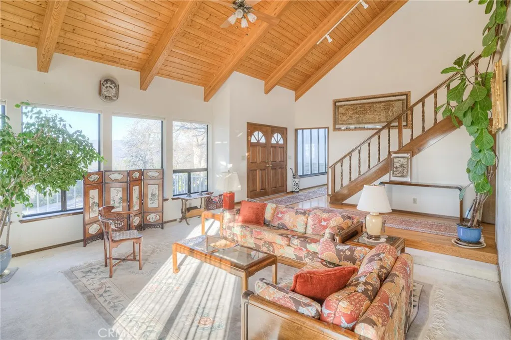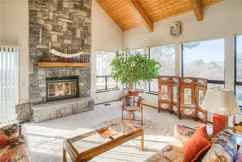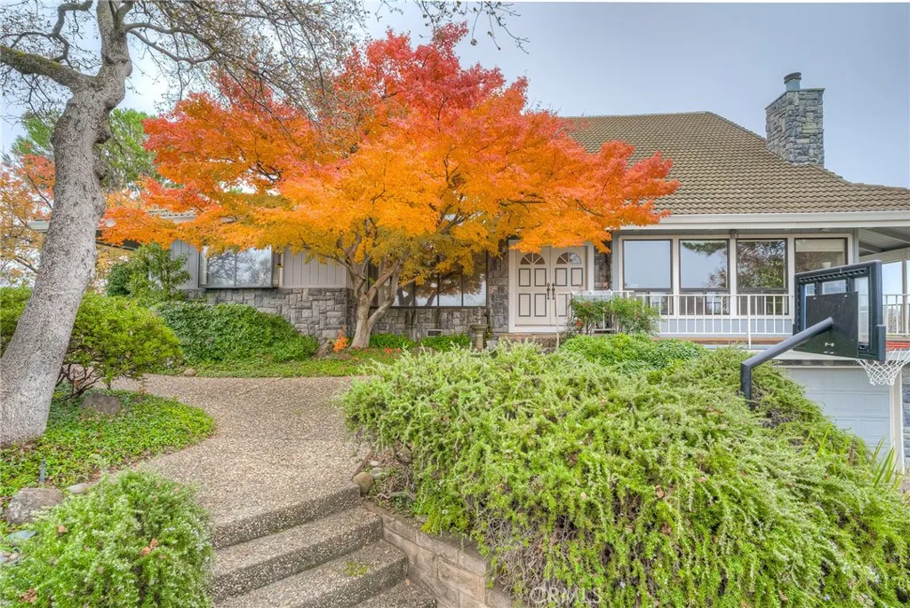 Stunning 5-bedroom, 4-bath home in a highly desirable Oroville location, offering truly remarkable panoramic views of the valley, surrounding foothills, and the Oroville Dam. Homes with views like this are rare in Oroville. This exceptional property features striking architectural design inside and out, complemented by beautifully curated professional landscaping with walkways that invite you to enjoy the serene surroundings and breathtaking vistas. Vaulted wood ceilings with exposed beams enhance the sense of space throughout the large home, while the dramatic two-story living room creates an impressive focal point. The open floor plan flows seamlessly, with a formal dining area perfectly positioned between the living room and kitchen. Large windows throughout the home showcase stunning views of the lush landscaping and expansive scenery beyond. The living room features a grand fireplace and a built-in bar area, ideal for entertaining. The spacious kitchen offers abundant counter and cabinet space, a large island with a second oven, and a charming garden window that frames beautiful outdoor views. An adjacent eating area provides additional space for casual dining. Just off the kitchen, the inviting family room features a wood stove, built-in cabinetry and bookshelves, and French doors that open to a patio and landscaped picnic area—perfect for enjoying views of the Oroville Dam. The exceptionally large primary suite includes built-in cabinets and a desk, a generous walk-in closet, and access to a private deck. Four additional bedrooms are well-sized and some include attached bathrooms and built-in cabinetry. The built-in pool area offers sweeping valley views and ample decking, creating an ideal setting for relaxing or entertaining family and friends. The large, three-car garage has additional space for storage. Conveniently located near the town of Oroville, the home provides easy access to shopping, medical facilities, and outdoor recreation at the Feather River and Lake Oroville. This is a rare and exceptional opportunity to own a truly remarkable home and property.