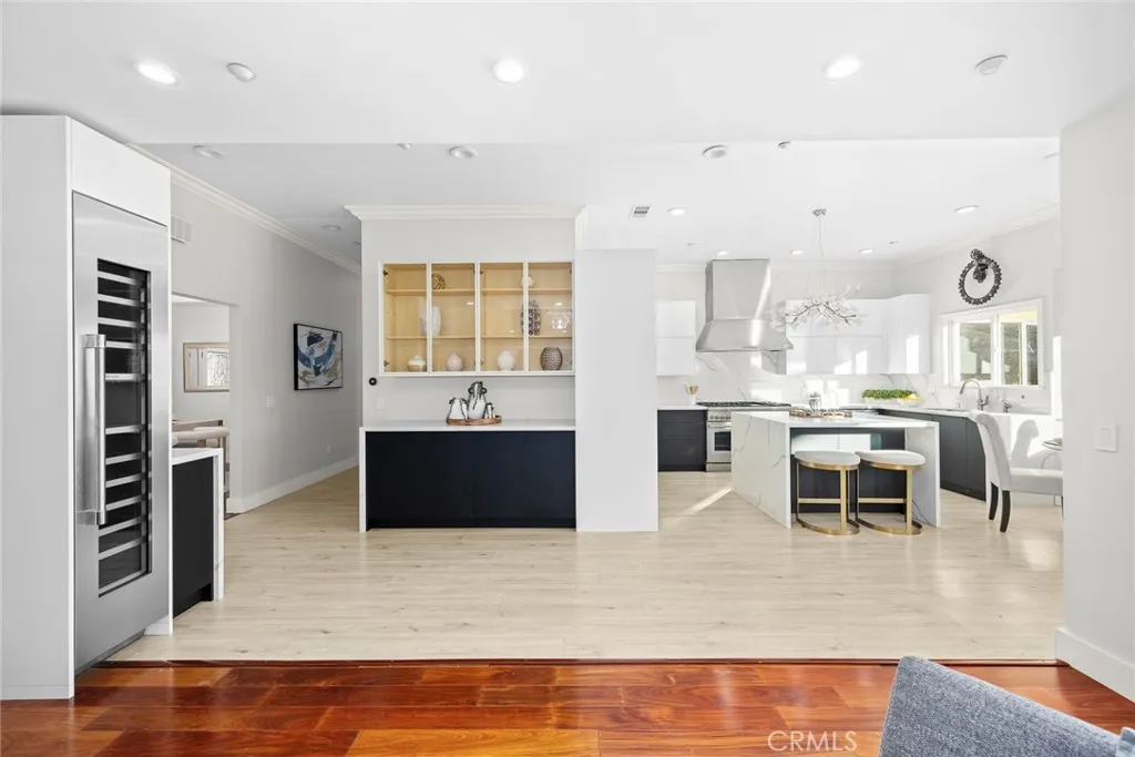 Gorgeous single-story home located on a beautifully landscaped 14,198 sq.ft. lot within the award-winning Arcadia Unified School District. Extensively updated and expanded in 2005, this residence offers 6 bedrooms and 4 bathrooms with an inviting open floor plan and exceptional indoor-outdoor living.The circular driveway welcomes you with manicured landscaping and mature trees. Inside, the spacious foyer opens to the formal living and dining areas with elegant cherry wood flooring, soaring ceilings, recessed LED lighting, and custom casement doors that highlight the serene backyard views.The remodeled chef’s kitchen features custom cherry wood cabinetry, premium stainless-steel appliances, granite countertops, and a built-in refrigerator. The luxurious primary suite includes a generous walk-in closet and a spa-inspired en-suite bathroom with a Swedish-style shower, steam sauna, and soaking tub.A true highlight of this home is the impressive tropical backyard retreat—perfect for entertaining. Enjoy the custom Trek deck, resort-style pool with waterfall, and covered BBQ area. The expansive yard also includes newer windows and doors, plantation shutters, and a 3-car detached garage offering abundant storage, a large laundry room with sink, and additional cabinetry.Smart-home features include security monitoring, lighting controls, and DVR camera surveillance. Located on a quiet street close to top-rated schools, shopping, restaurants, golf courses, and parks—this home truly offers the complete package.