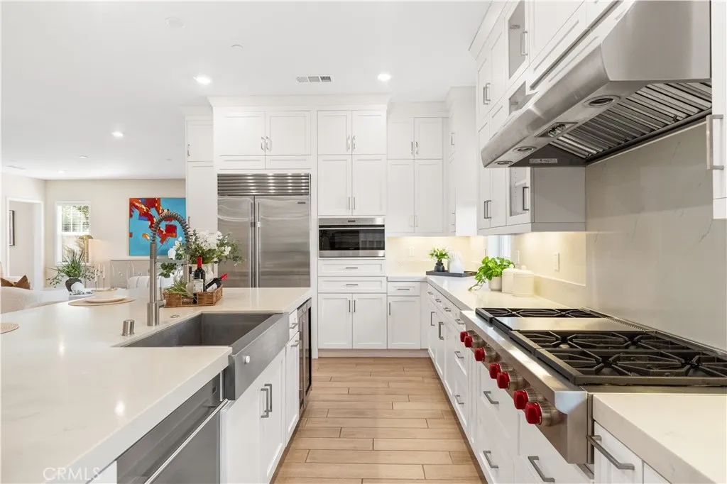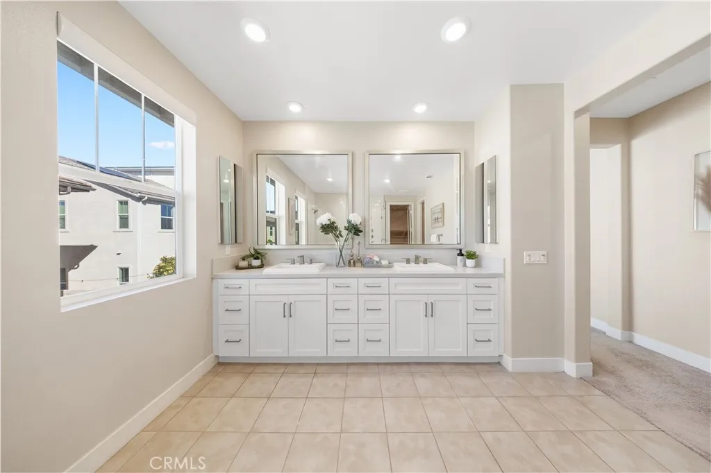 Located in the highly desirable Altair community, this beautifully maintained home offers resort-style living with three community pools, tennis courts, scenic hiking trails, and 24-hour guarded security. The home features an open-concept floor plan with granite countertops and wood-look tile flooring throughout. The main level includes one bedroom with full bath, one office and a half bathroom, an ideal for guests or multi-generational living. Upstairs offers three additional bedrooms and a spacious loft/den, perfect for a media room, home office, or family lounge. The primary suite is generously sized and includes dual sinks and a large soaking tub. Conveniently located near Portola High School and Woodbury Town Center. Solar was paid off.