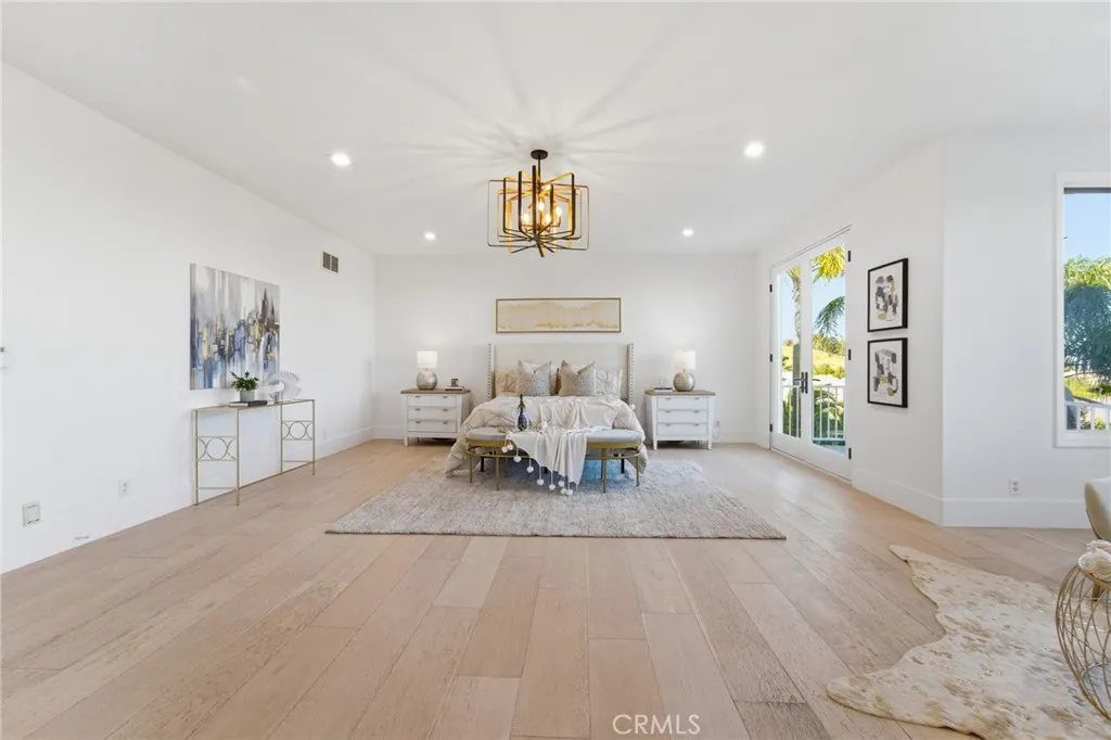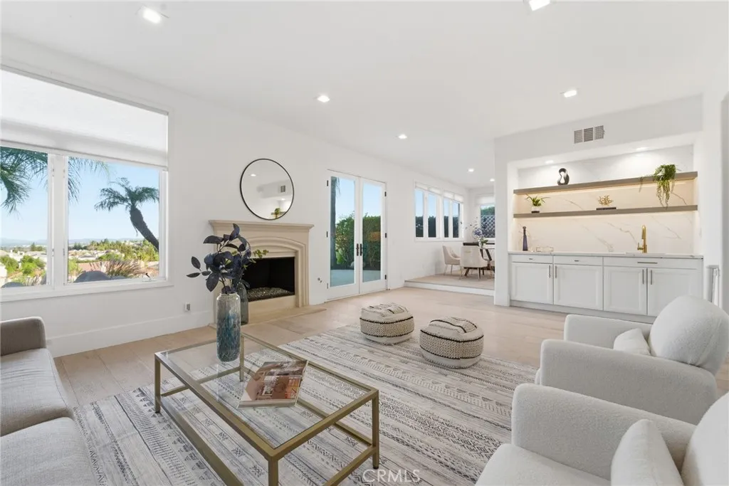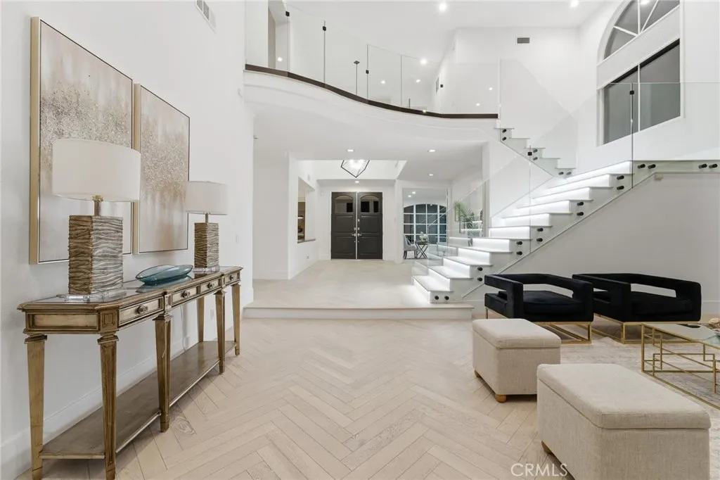 Newly remodeled! This exquisite 7612 Carmenita Lane in West Hills, CA 91304, a luxurious estate nestled in the prestigious Stonegate. This panoramic view property is ideally situated on a prime cul-de-sac street, offering unparalleled elegance and comfort. As you step inside, you're greeted by sophisticated white oak wood floors throughout, featuring a stunning herringbone pattern at the entryway and living room. The modern glass stair railings and LED lights under the stairs create a warm and inviting ambiance. The home boasts a spacious and convenient layout, with high volume ceilings and light-filled rooms, including two staircases, five XL bedroom suites each with its own bathroom, a den/office with a fireplace, and a large bonus room on the second level. Elegant upgrades enhance the beauty of the interior, including recessed LED lighting throughout, four upgraded fireplaces with a double-sided fireplace in the lavish master suite, and a newly added media room for entertainment. The master suite is a true retreat, offering breathtaking views, a sumptuous bathroom, a large closet, and a view balcony. The family room features a wet bar with a large granite counter, perfect for hosting gatherings. The spacious kitchen with ample cabinet storage and a large dining area, along with a formal dining room, cater to all your culinary needs. Outside, the low-maintenance yard boasts upgraded pool and spa equipment and upgraded landscaping – all overlooking the amazing panoramic view. Ideally located close to parks, temples, highly desirable schools, and shopping, this estate offers both privacy and convenience. Experience the pinnacle of elegance and comfort at 7612 Carmenita Lane, where every detail has been carefully considered to create a truly magnificent home.