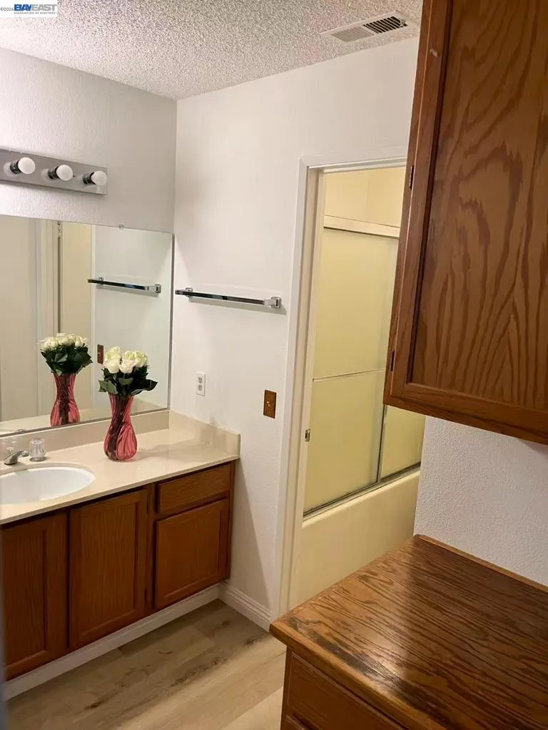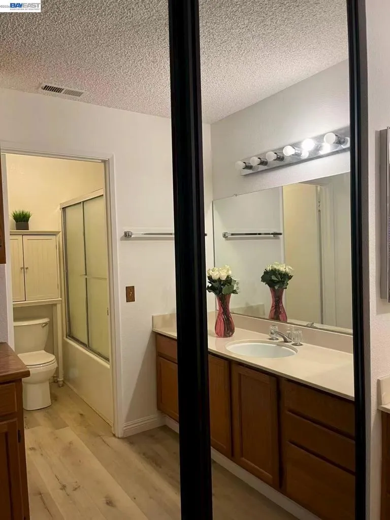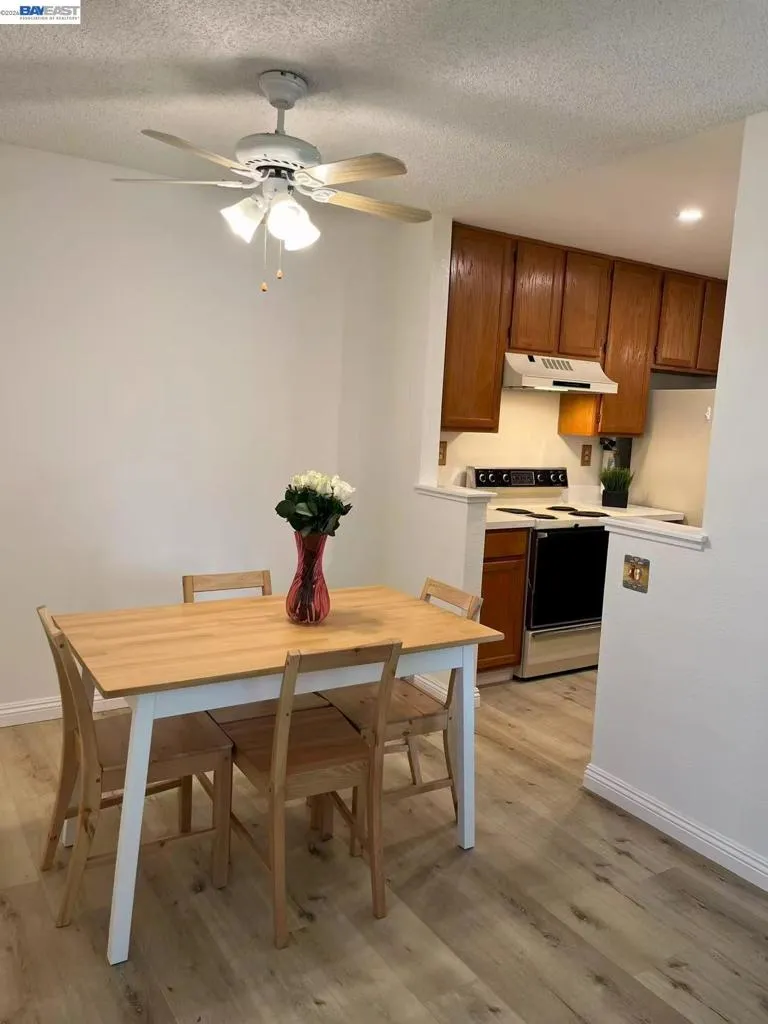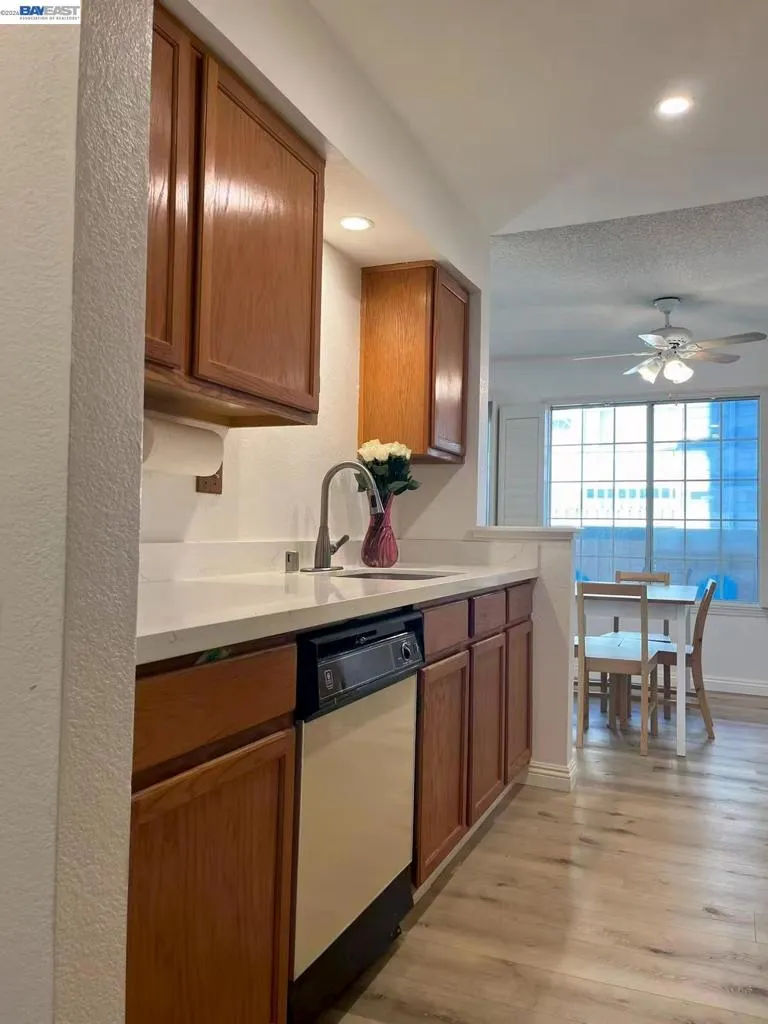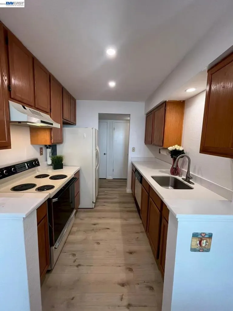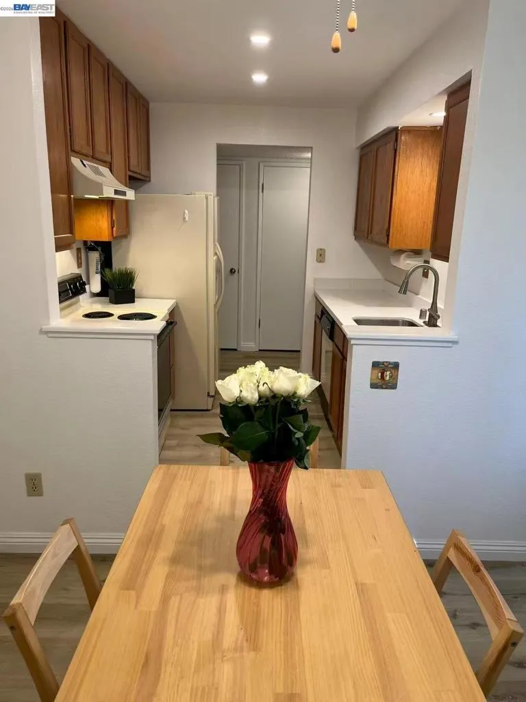 This lower level corner unit is in the perfect location. 2 bedrooms 2 baths is perfect for first time home buyers. The primary bedroom is generously sized with a full walk-in closet. Living room includes wood burning fireplace. Both bedrooms have large closets with sliding doors. Washer, dryer, fridge conveys with property. It has a private patio, fireplace. Plenty of additional parking and conveniently located near shopping, public transportation, bay trails, and easy freeway access. has plenty of amenities, pool, car wash station, guest parking. Unit is FHA approved.