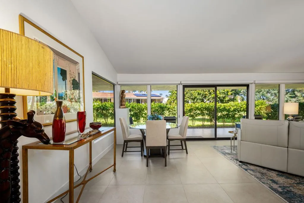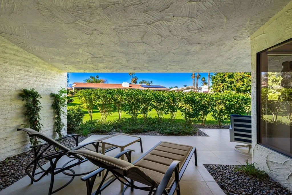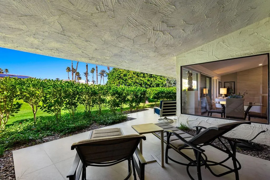 Stunning Remodeled Home with Luxury Designer Touches. Overlooking lush greenbelt and second fairway views, this exceptional residence is ideally located in the heart of Indian Wells at Desert Horizons Country Club and exemplifies sophisticated design with high-end finishes--perfect for both refined living and effortless entertaining.A spacious private front courtyard welcomes you into an open-concept floor plan highlighted by meticulous craftsmanship, including 24'' x 48'' Italian porcelain tile flooring throughout that extends floor-to-ceiling along the dramatic fireplace, along with custom textured walls and ceilings. Extensive upgrades include new plumbing and electrical systems, custom lighting, and 4'' baseboards that enhance the home's modern aesthetic.The expanded remodeled Chef's Kitchen has been thoughtfully opened to the Great Room to maximize sightlines to the stunning views. It features a new island with white quartz countertops, soft-close custom cabinetry, and state-of-the-art GE appliances--ideal for gatherings both large and intimate.The Primary Suite offers a generous walk-in closet, dual vanities, a large walk-in shower, and private patio access. Two guest bedrooms each feature en-suite designer bathrooms with custom tile, sleek fixtures, and spa-inspired finishes.The property also benefits from a leased solar system for reduced energy costs. Enjoy the convenience of a community pool just steps away. Country Club resort-style amenities include a newly remodeled clubhouse, private 18-hole golf course, 8,000+ sq. ft. fitness and wellness center, and sports court pavilion--delivering the ultimate desert lifestyle.This is more than a home, it's luxury living at its finest. Don't miss this opportunity. Schedule your private showing today.