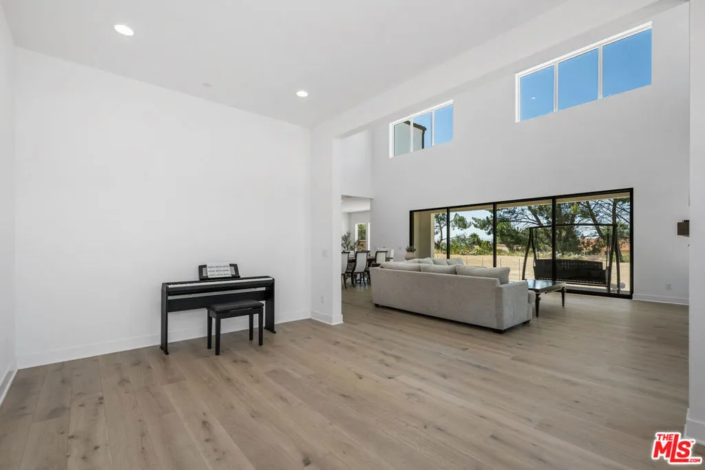 Introducing a stunning and the luxury home located in the exclusive gated community of Verona Estates in Chatsworth just minutes from The Vineyards shopping, dining, and entertainment center. This exquisite residence showcases 5 bedrooms and 5.5 bathrooms, situated on a generous 20,053 sq ft lot with an impressive 4,872 sq ft of refined living space.Step through the inviting covered entry into a dramatic two-story foyer, highlighted by a striking floating staircase with sleek glass panel railings. The expansive great room and two-story casual dining area feature a 60" linear fireplace and a large flex space ideal for an office, media room, or library.A wall of 32 feet of stacking glass doors seamlessly connects the interior to the expansive covered outdoor living space and a pool-sized backyarda true entertainer's dream. An additional lower yard area offers room for up to two horses or can be transformed into a private recreation space.The gourmet kitchen is a showstopper with a large marble waterfall-edge island, Wolf appliances, Sub-Zero refrigerator, breakfast nook, and a separate Prep Kitchen. You'll also find two walk-in pantries and a dedicated work room for extra storage and functionality.Upgraded throughout with designer finishes including custom cabinetry, high-end hardware, wide-plank European oak hardwood flooring, and luxurious large-format tile in the spa-inspired primary bath featuring an oversized soaking tub and a spacious dual-head glass-enclosed shower. All bedrooms are en-suite, including a convenient first-floor guest suite. Situated on a private corner lot on a quiet cul-de-sac, the home also includes extensive electrical upgrades, pre-wiring for surround sound and exterior security, and a leased solar system for energy efficiency. Must see to appreciate the quality and the luxury of this beautiful estate. This stunning Siena floor plan boasts over $275,000 in premium builder upgrades and is truly move-in ready. Check the listing Supplements.