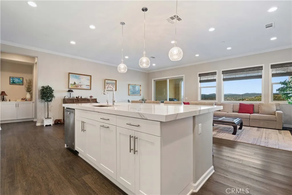 Excellent single level VIEW-HOME located in the exclusive gated community of ALIENTO. 3 bedrooms with option for a 4th bedroom, 2.5 baths, the 2 front bedrooms share a jack & jill bathroom with a walk-in shower. The open floor plan connects the living/dining/kitchen areas. Also has high ceilings, fireplace, quartz counter tops, crown molding throughout, upgraded bathrooms, back patio has tile flooring and artificial grass for low maintennance. Community Amenities: clubhouse, gym, lap and kids' pools, spa, dog park, bocce ball court, private parks, and hiking trails. Less than 2 miles from the 14 freeway with NO noise, and 5 miles from the 5 freeway access. Conveniently located minutes from Trader Joe’s, Costco, Target, top schools, dining, and more. Don't miss a chance to live in this gated community.