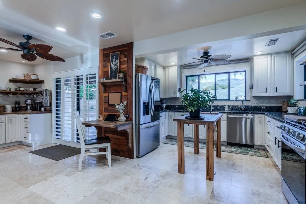 Set in a peaceful East Hemet location with expansive valley and mountain views, this well maintained property offers space, flexibility, and long term value with no HOA and a low property tax rate.The main residence is filled with natural light and features fresh flooring and carpet, plantation shutters, and custom wood accents throughout. A wet bar enhances the living space, creating an inviting setting for entertaining and everyday use.Major system upgrades add comfort and efficiency, including a newer roof, new stucco exterior, brand new furnace and air conditioning system, upgraded attic insulation, energy saving window coatings, and pull down attic access. A new water heater and dishwasher further contribute to the move in ready condition.A fully independent accessory dwelling unit provides excellent versatility. The ADU includes its own kitchen, bathroom, and shower, offering complete separation from the main home for added privacy and functionality.Energy costs are significantly reduced with a large solar system that is fully paid off. No lease and no monthly solar payment.The exterior offers a serene setting with mature fruit trees, open space, and scenic views. Additional features include a well built storage shed and an oversized garage with abundant storage, ideal for tools, equipment, or recreational needs. This is a rare opportunity to own a truly turn key East Hemet property with thoughtful upgrades, independent living space, strong energy efficiency, and a quiet setting.