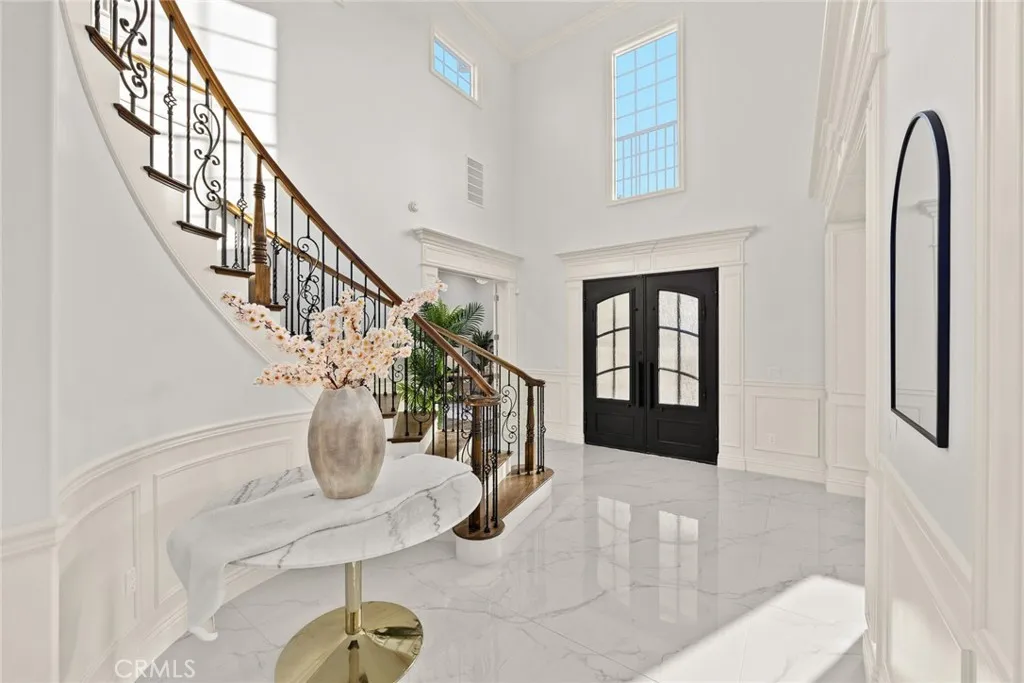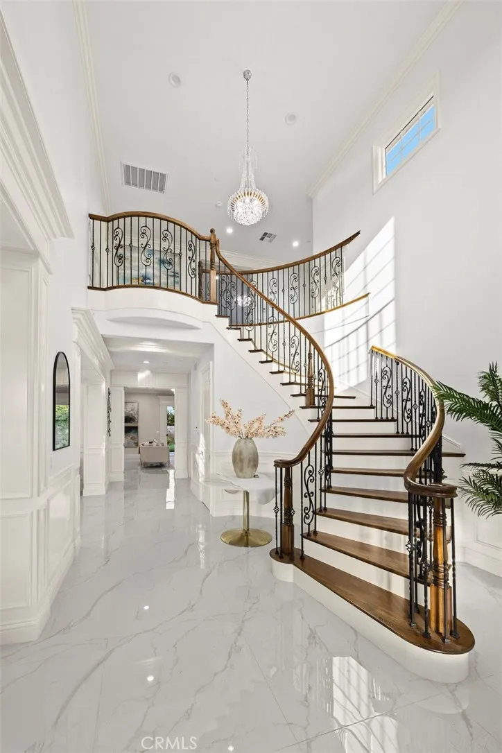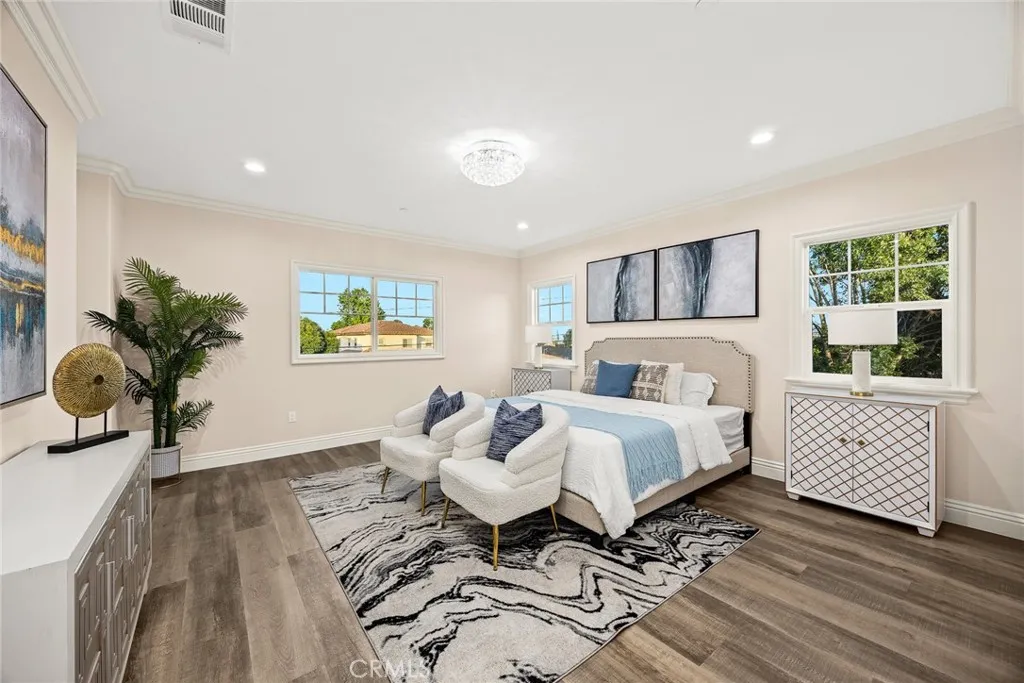 Brand New 2025-Built Home in the Prestigious Temple City School District is now on the market! Welcome to this stunning newly constructed luxury estate featuring 5 ensuite bedrooms and 5.5 bathrooms, located in the highly sought-after Temple City School District. This exquisite home is introduced by a secure wrought iron front fence and an automatic gate, leading to a charming front patio and a grand double-door entry. Soaring ceilings and meticulous craftsmanship set the tone for this refined custom residence. Inside, the open-concept floor plan is bathed in natural light from expansive picture windows, creating a bright and inviting ambiance throughout. The first floor showcases an elegant formal living room and a spacious dining room—both designed to provide a warm, welcoming environment for entertaining and everyday living. A standout feature is the 12-foot-high ceiling in the office, a beautiful and versatile space that can also serve as a guest suite or additional living area. Two additional ensuite bedrooms on the first floor add flexibility, making the home ideal for multi-generational living. The heart of the home is a thoughtfully designed kitchen that opens to a cozy yet sophisticated family room. The kitchen features custom cabinetry, a casual breakfast area, and a stylish bar/countertop with under-cabinet lighting—perfect for both entertaining and daily living. An elegantly designed spiral staircase with intricate detailing leads to the upper level, where you'll find a cozy loft and two spacious ensuite bedrooms. The primary suite is a luxurious retreat, complete with a grand double-door entry, room for a private sitting area, a generous walk-in closet, and a beautifully appointed master bath featuring a soaking tub, separate walk-in shower, dual vanities, and a dedicated makeup counter. This home also includes fully paid-off solar panels, adding energy efficiency and long-term value. The professionally landscaped front and back yards are designed with low maintenance in mind while offering timeless charm. The wide driveway leads to a three-car attached garage, with additional parking behind the gated entrance. The backyard boasts a spacious patio, lush lawn, and potential for an ADU if desired. This exceptional new home offers modern comfort, timeless elegance, and unmatched convenience in a top-tier school district. If you're searching for a newly built home with four or more bedrooms in Temple City, this one is truly a rare find.