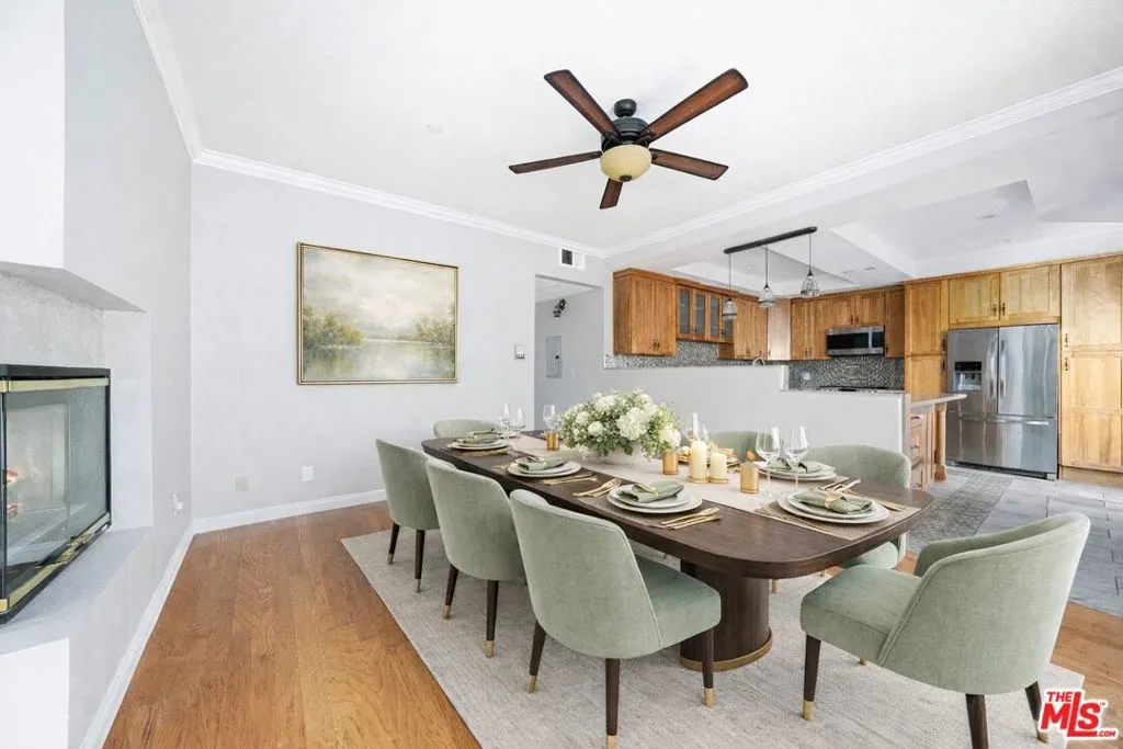 Located in the heart of Sherman Oaks this 3 bedroom 3 1/2 bath condo has been extensively updated. Large open kitchen with ample living room, dining room, and family room with fireplace. Each bedroom is an ensuite and has washer dryer in unit. Fitness room is easily accessible and the association boasts community pool. Easy access to Ventura Blvd. Single level throughout with a zen patio to enjoy morning coffee or a nightcap. It also comes with 2 parking spaces.