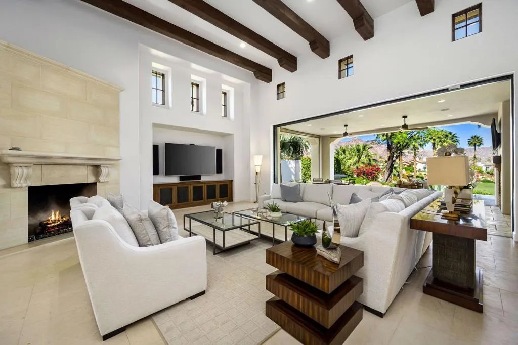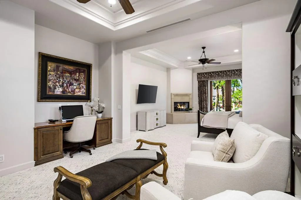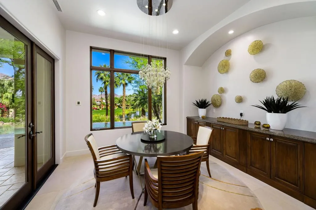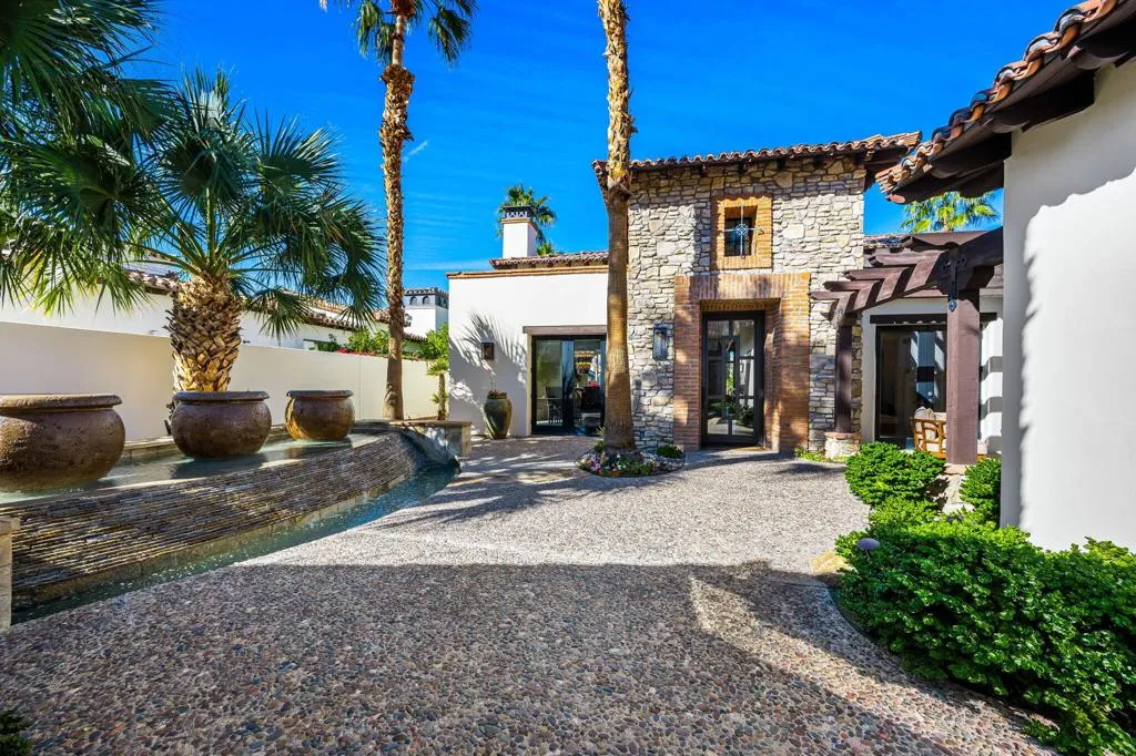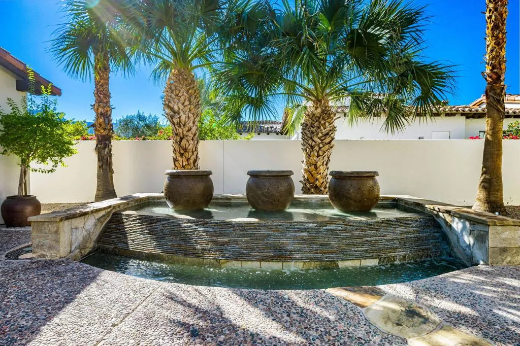 Ideally located in the heart of Tradition Golf Club, this exceptional home captures serene down-valley lake views while offering privacy and easy access to the Coyote Cafe. A private courtyard entry welcomes you with a stately fountain and inviting outdoor living area with fireplace, setting a warm and elegant tone from the moment you arrive. Inside, the Great Room features soaring ceilings accented by rugged wood beams and refreshed interior design, with pocketing doors that seamlessly open to expansive indoor-outdoor living and breathtaking views. The gourmet kitchen is thoughtfully designed with a cozy bar and breakfast nook, both perfectly positioned to enjoy the lake scenery. The spacious primary suite is a true retreat, complete with a sitting area, fireplace, luxurious bath with soaking tub, dual vanities, and a large walk-in closet. Two guest bedrooms with ensuite baths are in the main home, while a private casita offers a sitting area and kitchenette--ideal for guests or extended stays. A formal dining room overlooks the tranquil courtyard fountain, creating an ideal setting for entertaining. The outdoor living area is designed for year-round enjoyment, featuring a fireplace, built-in BBQ, and TV, all overlooking the pool and spa with beautiful lake views. This home combines timeless elegance, thoughtful design, and an unmatched setting within one of Tradition's most coveted locations.