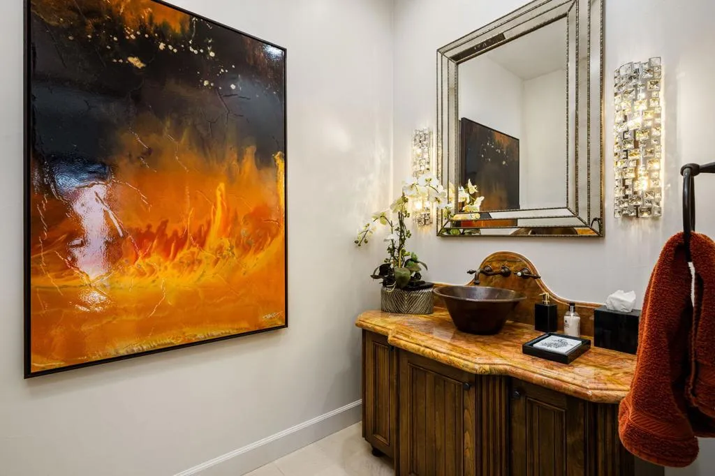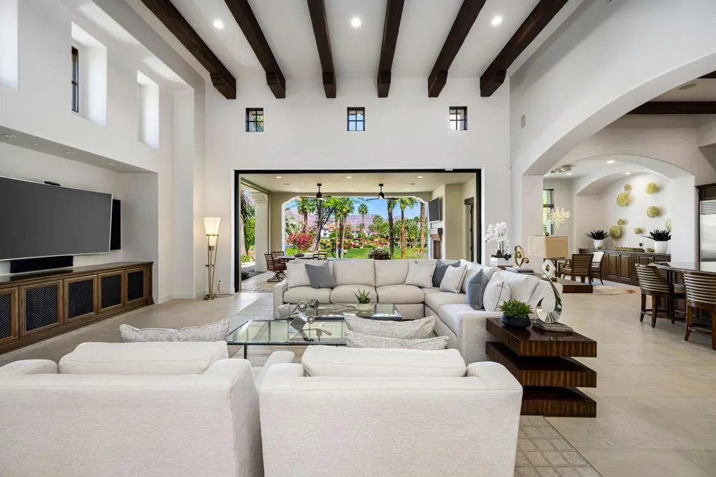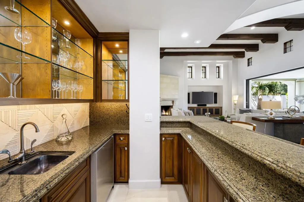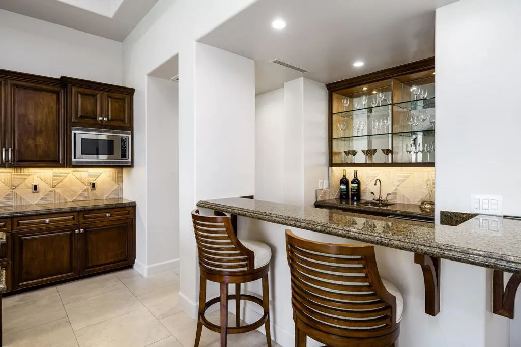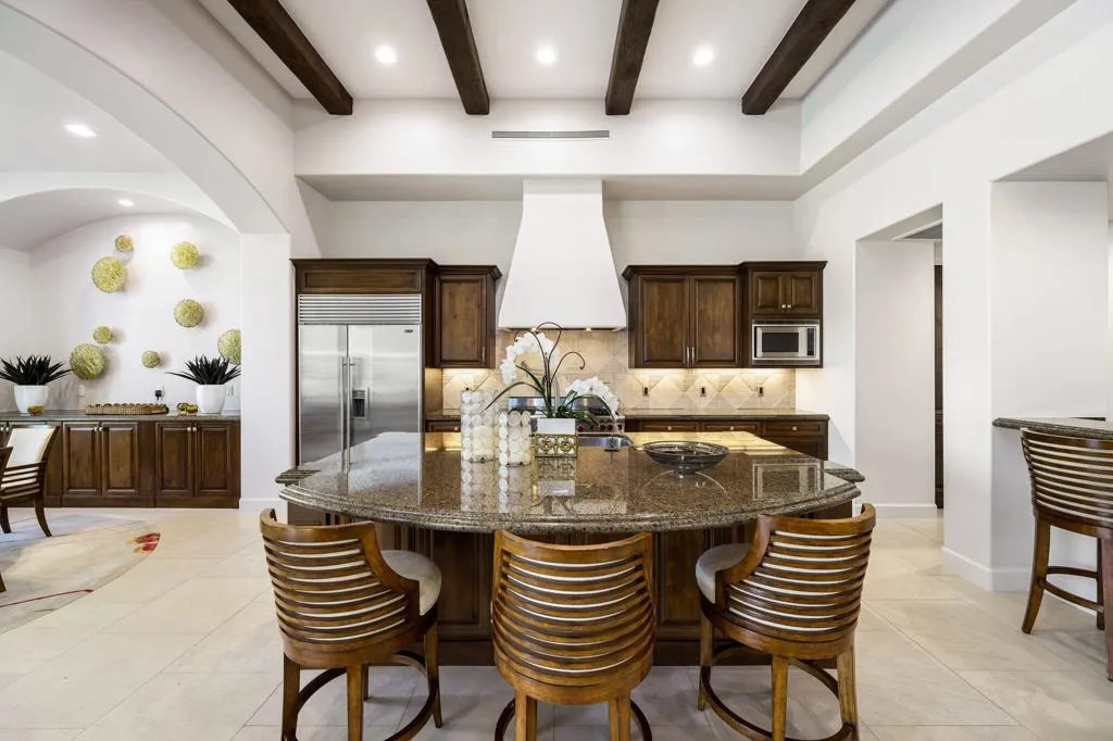 Ideally located in the heart of Tradition Golf Club, this exceptional home captures serene down-valley lake views while offering privacy and easy access to the Coyote Cafe. A private courtyard entry welcomes you with a stately fountain and inviting outdoor living area with fireplace, setting a warm and elegant tone from the moment you arrive. Inside, the Great Room features soaring ceilings accented by rugged wood beams and refreshed interior design, with pocketing doors that seamlessly open to expansive indoor-outdoor living and breathtaking views. The gourmet kitchen is thoughtfully designed with a cozy bar and breakfast nook, both perfectly positioned to enjoy the lake scenery. The spacious primary suite is a true retreat, complete with a sitting area, fireplace, luxurious bath with soaking tub, dual vanities, and a large walk-in closet. Two guest bedrooms with ensuite baths are in the main home, while a private casita offers a sitting area and kitchenette--ideal for guests or extended stays. A formal dining room overlooks the tranquil courtyard fountain, creating an ideal setting for entertaining. The outdoor living area is designed for year-round enjoyment, featuring a fireplace, built-in BBQ, and TV, all overlooking the pool and spa with beautiful lake views. This home combines timeless elegance, thoughtful design, and an unmatched setting within one of Tradition's most coveted locations.