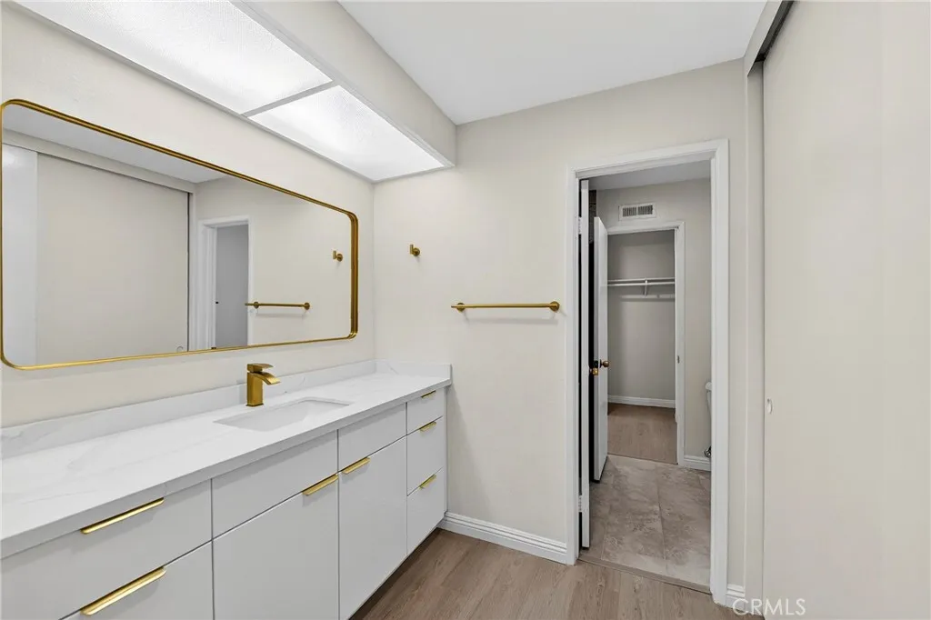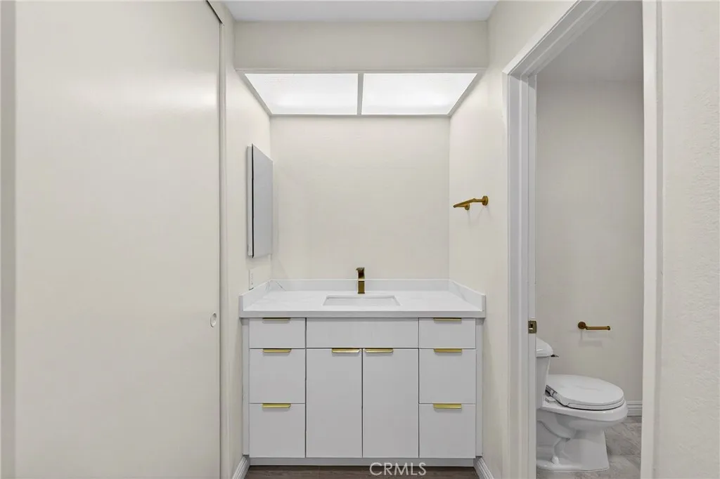 Welcome home to The Fairway! This move-in ready 2-bedroom, 1.5-bathroom. Enjoy the bright and inviting formal living room, enhanced by abundant natural light and a cozy gas fireplace. Adjacent to the kitchen, you’ll find a flexible space perfect for a family room or dining area to suit your daily lifestyle. The kitchen features ample cabinet storage, quartz countertops, a gas range, recessed lighting, and a convenient pass-through window to the living room. Upstairs, both bedrooms include their own sink and vanity, sharing a central shower/tub. One bedroom also offers access to a private deck. With central heat and air conditioning. Parking is easy with a 2-car garage that includes laundry hookups and additional storage. The Fairway community is well-maintained and offers peaceful greenbelts, along with a sparkling pool and spa. Enjoy access to highly rated Cerritos schools and the convenience of being close to the 91 and 605 freeways for effortless commuting. Shopping, dining, and entertainment are just blocks away. Don’t miss this fantastic opportunity! HOA includes water and trash.