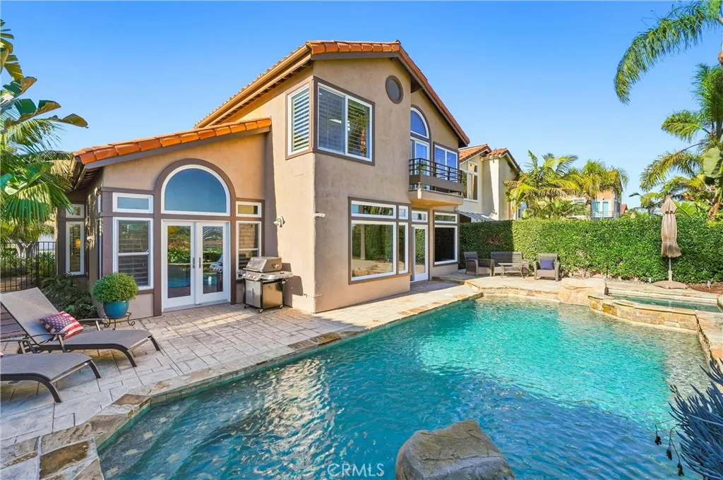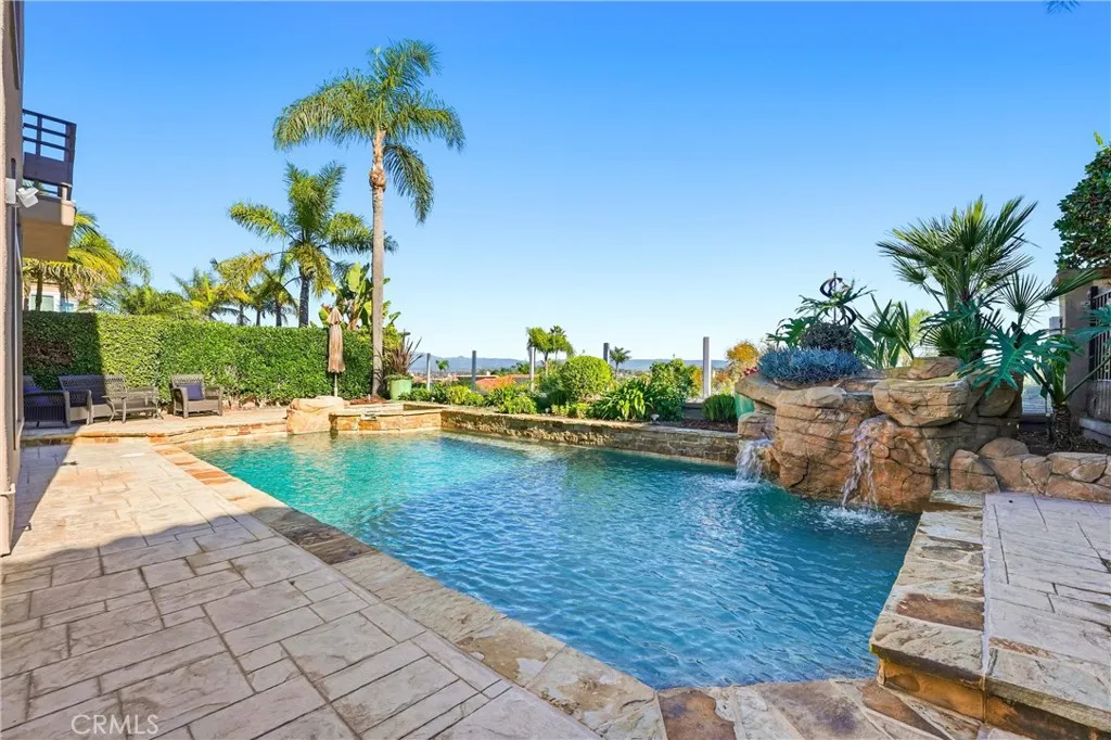 Situated within the Paragon enclave of Niguel Summit, this residence offers an exceptional combination of elevated views, thoughtful design, and effortless indoor outdoor living. Set on a hillside lot, the home captures sweeping views of rolling hills, city lights, and the Pacific Ocean beyond, enjoyed throughout the home. The main level features soaring ceilings, warm wood flooring, and a remodeled staircase with warm wood finishes that adds architectural interest and enhances the home’s open, airy feel. The kitchen is well appointed with white cabinetry, granite countertops, a recently added Wolf gas range, KitchenAid double ovens and microwave, a Zephyr recirculating exhaust hood, and a generous kitchen peninsula offering ample countertop space and a seamless connection to the adjacent living areas. Expansive windows and sliding glass doors connect the family room, breakfast nook, and backyard, creating a natural indoor outdoor flow. Designed for both entertaining and relaxation, the private backyard features a resort style pool and spa with waterfall features and mature landscaping, positioned to take in the views. The home offers four bedrooms, including a main level bedroom with a full bathroom ideal for guests, a home office, or multigenerational living, while upstairs the primary suite provides a serene retreat with elevated outlooks and a spa inspired bathroom with dual vanities, a soaking tub, and a walk in shower, complemented by generously sized secondary bedrooms. Ideally located minutes from world class beaches, coastal trails, and everyday conveniences, the home offers easy access to the Ritz-Carlton and Waldorf Astoria Monarch Beach, Dana Point Harbor, and premier dining, shopping, and resort destinations, with nearby hiking and biking trails, golf courses, and South County beaches completing the coastal Orange County lifestyle.