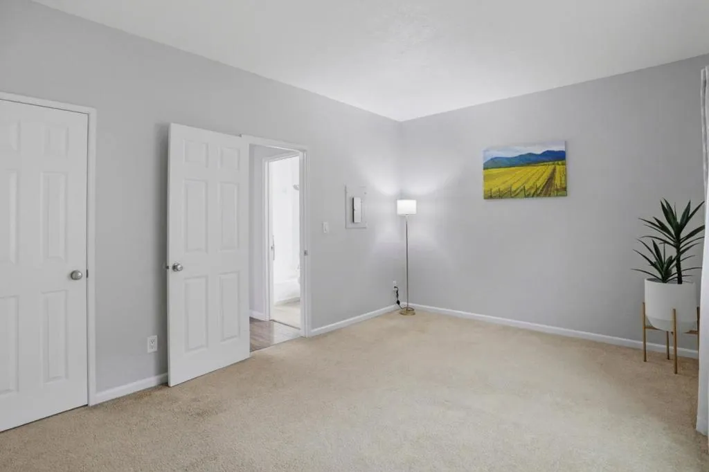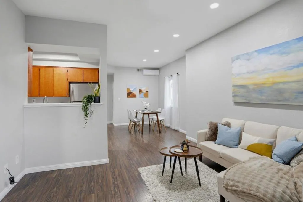 Welcome to this beautifully updated, ground-floor end-unit condo nestled within a gated community. This light-filled 1-bedroom, 1-bath home features a spacious living room with recessed lighting, laminate flooring, and a sliding glass door that opens to a private patio with a convenient storage closet, perfect for indoor-outdoor living. The well-appointed kitchen offers quartz countertops, an electric cooktop, oven range, microwave, dishwasher, garbage disposal, and refrigerator, seamlessly connecting to the dining area within the living room, ideal for everyday living and entertaining. The generously sized bedroom boasts three closets, providing ample storage. Additional highlights include 9-foot ceilings, double-pane windows, in-unit laundry, and two mini-split systems for efficient heating and air conditioning year-round. Enjoy the convenience of one assigned carport along with ample guest parking. Community amenities include a swimming pool, relaxing spa, expansive greenbelt areas, and mature trees, all within the security of a gated complex. Ideally located near Highways 87, 280, and 680, with easy access to shopping, dining, downtown Willow Glen, and the Tamien Caltrain/VTA station. Don't miss this opportunity to own a stylish, move-in-ready condo in a prime location.