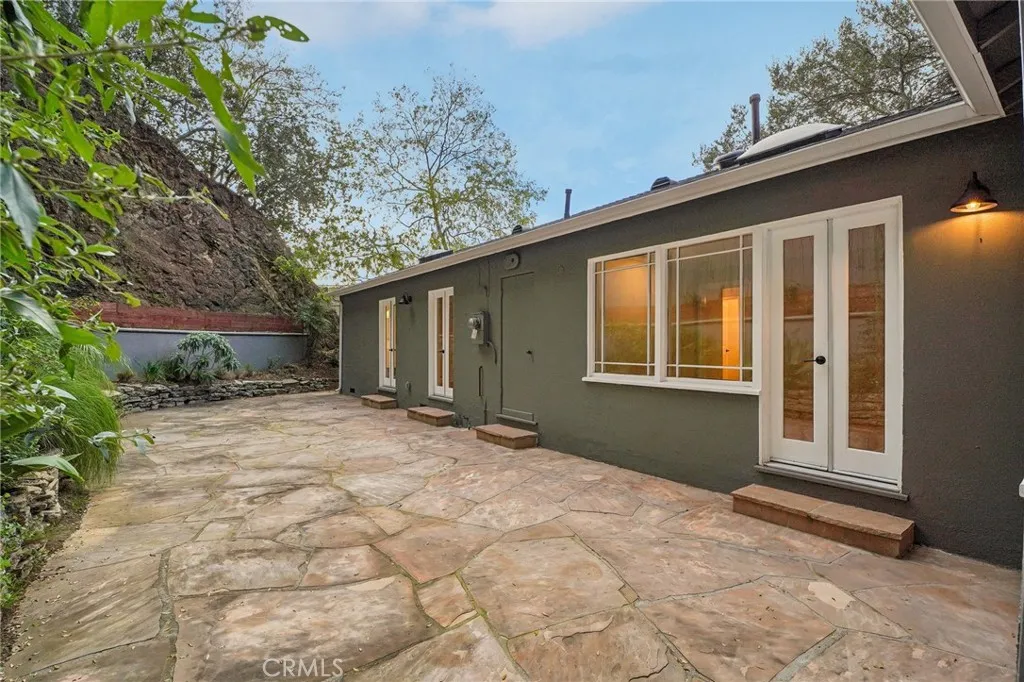Tucked into the heart of Beachwood Canyon, this charming hillside residence blends classic character with thoughtful updates and exceptional indoor-outdoor living. Warm wood floors, abundant natural light, and a welcoming fireplace anchor the living spaces, while the kitchen features butcher block countertops, a professional-grade range, and timeless cabinetry. French doors and multiple outdoor access points lead to expansive stone patios, ideal for entertaining, dining al fresco, or enjoying the serene canyon setting, complete with a built-in outdoor kitchen and pizza oven. A detached garage with exposed beam ceiling offers flexibility for parking, storage, or creative use. Surrounded by mature trees and greenery, yet just minutes from Franklin Village, Griffith Park hiking trails, Hollywood, Los Feliz dining, and easy freeway access, this home offers a rare balance of privacy, charm, and convenience in one of Los Angeles’ most sought-after neighborhoods.