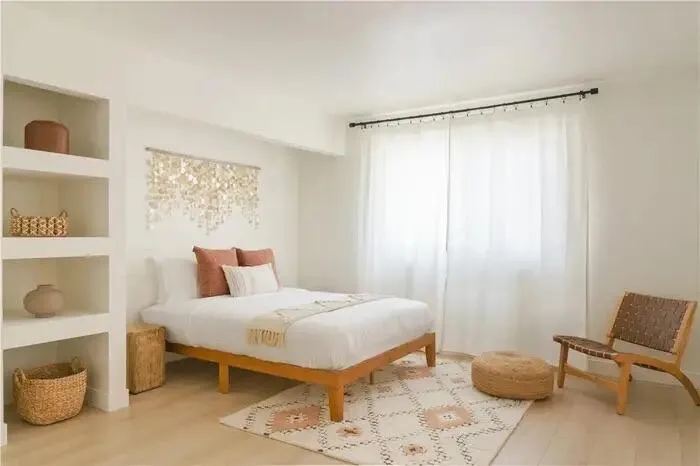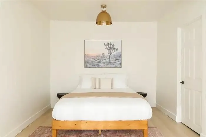 Welcome to 4622 Avenida La Mirada, a serene organic modern retreat nestled in the heart of Joshua Tree. This minimalist haven has been thoughtfully designed with intentional details and impeccable craftsmanship, offering a perfect blend of style and tranquility. Whether you're seeking a personal wellness retreat or a stunning space to entertain, this expansive and airy home delivers.Step inside to discover a dining room that flows seamlessly into an open-concept chef's kitchen, featuring smooth plaster walls, a limestone backsplash, and Zia tiles. The custom resin countertops are as functional as they are beautiful, while dimmable recessed lighting throughout the home creates the perfect ambiance. The living room boasts custom lit wall niches, ideal for showcasing your favorite art pieces, and a gallery-framed TV ready to display your chosen masterpiece. Designed with gatherings in mind, the communal living spaces are perfect for hosting friends and family.The home features two luxurious bathrooms, each finished in polished cement with unique rock sink bowls that bring the outdoors in. Chevron clay tiles elongate the space, adding a touch of earthiness. With updated plumbing and electrical systems, this home is as modern as it is timeless.While officially listed as a 3-bedroom home, the property offers incredible flexibility, functioning as a 4- to 5-bedroom space. The primary suite includes an attached living area, currently styled with twin beds for short-term rental use, making it an ideal setup for hosting guests or creating a private retreat.Situated on a large lot in a peaceful neighborhood, the backyard offers sweeping mountain views and endless possibilities for outdoor enjoyment including a spa and firepit. Located just 2.8 miles from downtown Joshua Tree and a short 13-minute drive to the entrance of Joshua Tree National Park, this home is perfectly positioned to enjoy the best of the area. Currently an active Airbnb, it has been lovingly used as both a rental and a personal retreat by the seller.Don't miss the opportunity to own this stunning, versatile property in one of California's most sought-after desert destinations.