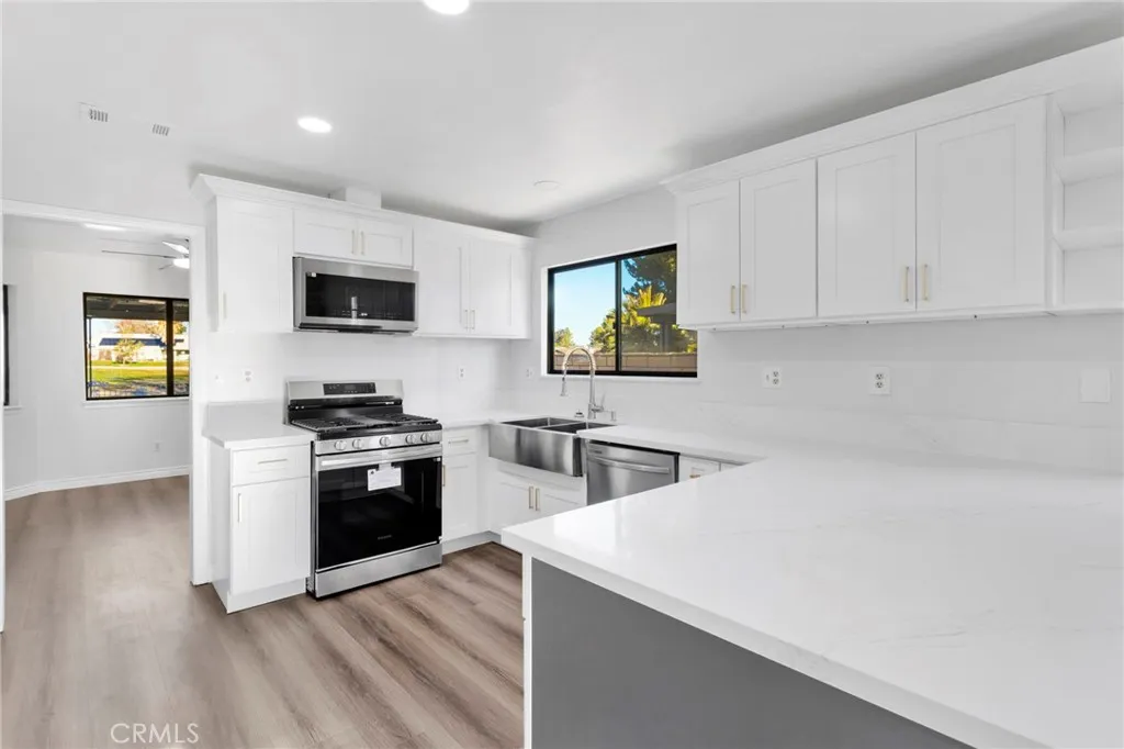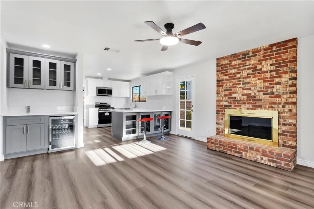 Welcome to this completely remodeled home with stunning golf course view and no HOA. It features a brand-new kitchen with quartz countertops and brand-new stainless steel appliances. A stylish bar in the living room, complete with a cozy fireplace, provides the perfect space for hosting guests, parties, and entertaining.