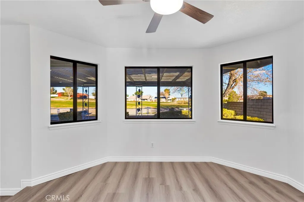 Step outside to new turf landscaping and multiple outdoor seating areas, including a welcoming front porch, a spacious covered back patio with golf course views, and an additional side patio, perfect for gatherings, parties, BBQS, or creating separate seating areas. All those outdoor spaces are secured by fencing and front private gate.