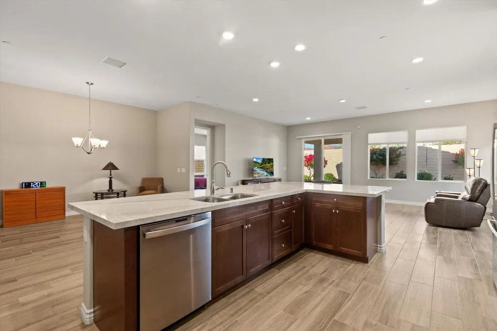 Every morning at Four Seasons at Terra Lago, you wake up with a calendar full of choices. There's pickleball, a lap in the pool, a watercolor class, lunch at the bistro... This is Indio's premier 55+ resort community, and 85536 Brovello Drive is your front door in.Built in 2019, this single story Mecca Hills floor plan delivers 2,152 sq ft of thoughtfully designed living. 2 bedrooms, 2.5 baths, and a flex room that adapts to whatever this chapter calls for: a home office, a yoga studio, art space, or guest overflow. The open concept kitchen features a generous island and flows naturally into sun filled living and dining spaces. The primary suite easily fits a king bed and features dual vanities, a walk-in shower, and a generous walk-in closet. Your guests get their own private suite with a dedicated bath. No sharing, no compromises.The Lodge. A 22,000 sq ft clubhouse that puts indoor and outdoor pools, tennis and pickleball courts, a state-of-the-art fitness center, ballroom, library, bistro, and an on site salon and barber shop steps from your door. A packed social calendar means you're never without something to do, or someone to do it with.Beyond the gates, the Coachella Valley delivers: 100+ golf courses, hiking, casinos Joshua Tree National Park, the Acrisure Arena, El Paseo boutiques, and Palm Springs just minutes away. This is more than a home. It's the retirement you actually planned for.
