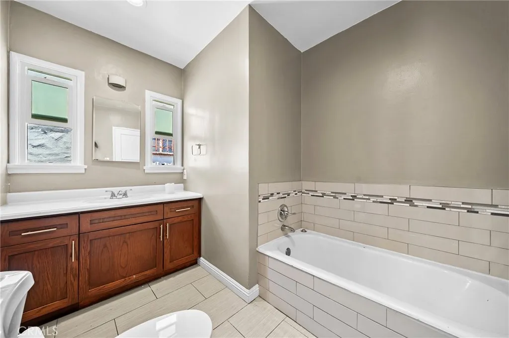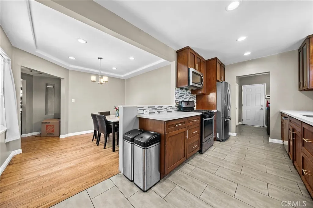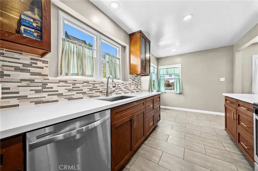 Welcome to this beautifully updated home, nestled in a highly sought-after Inglewood adjacent neighborhood. This spacious 4 bedroom, 2 bathroom home boasts 2030 sf of living space. From the moment you enter, the bright and airy living room with its nice hardwood floors welcomes you, flowing effortlessly into the open concept kitchen and dining area. The modern kitchen is a standout, featuring quartz countertops, custom oak cabinetry and a stylish glass tile backsplash that adds a contemporary touch. The master suite offering double closets, and an abundance of natural light from the large windows. The luxurious bathroom showcases a custom oak vanity, enhancing the home's upscale feel. Enjoy a private, low maintenance yard with artificial grass and a trex deck, providing the perfect spot for entertaining or simply relaxing. The detached garage offers exciting potential for an ADU or additional storage. Located just minutes from the new Sofi LA Rams stadium, this home is ideal for those seeking both comfort and convenience in an up and coming neighborhood.