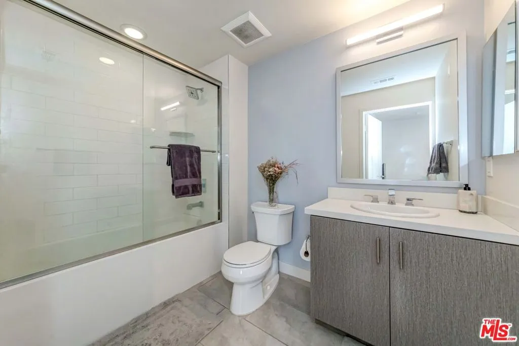 Penthouse 1 sits at the very top of The Element Building and offers a bright, modern 2-bedroom, 2-bath layout with amazing city views, including the Hollywood Sign and the Koreatown skyline. The open floor plan feels airy and comfortable, with wide-plank hardwood floors, recessed lighting, and lots of windows that bring in natural light throughout the day. The kitchen is clean and contemporary, featuring polished quartz countertops, a custom glass and natural stone backsplash, modern cabinetry, and stainless steel appliancesincluding a refrigerator, range, and dishwasher. The spacious primary bedroom opens to the balcony and includes a walk-in closet and a private en-suite bath. The second bedroom is well-sized and offers great privacy. A separate laundry room with a full-size washer and dryer adds everyday convenience. This penthouse comes with two side-by-side parking spaces and bicycle storage in a gated garage. Residents also enjoy access to a full fitness center with boxing and yoga areas, a landscaped courtyard with lounge seating, a community BBQ, and a pet-friendly dog walk. Located in the heart of Koreatown, The Element puts you close to some of LA's best restaurants, cafes, and nightlifefrom popular Korean BBQ spots to cocktail lounges and local coffee shops. With quick access to DTLA, Larchmont Village, and the Metro, this penthouse offers a great mix of comfort, style, and vibrant city living.