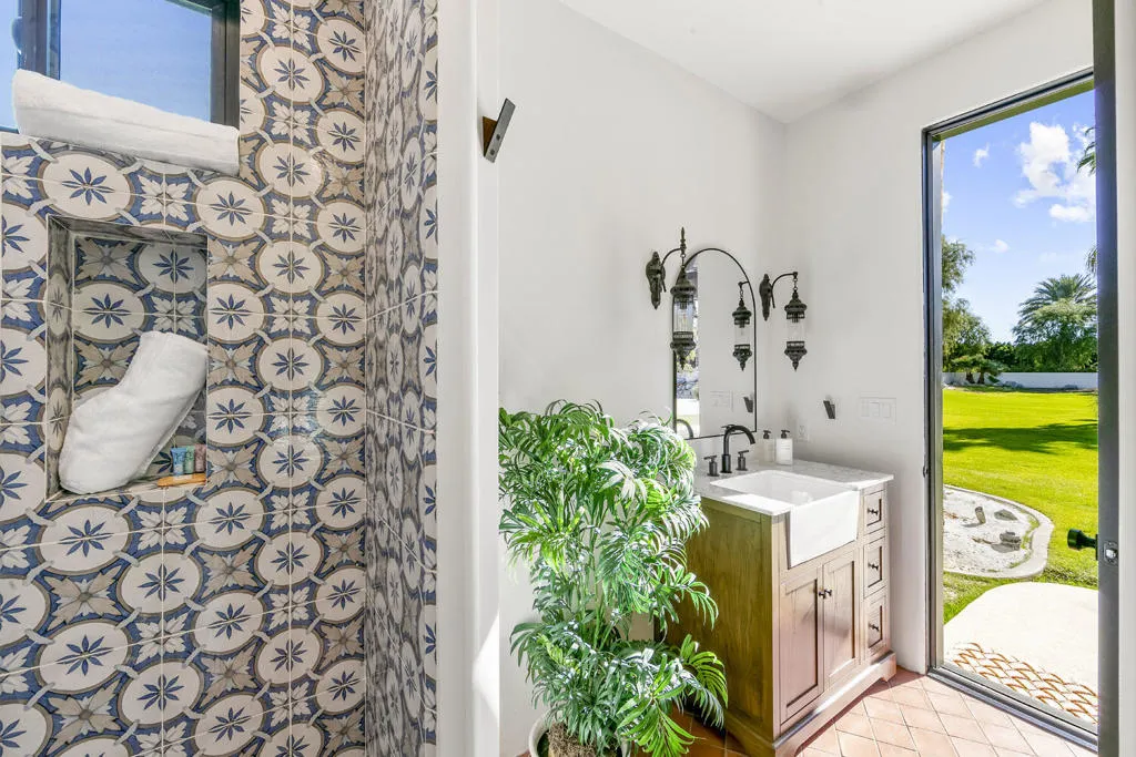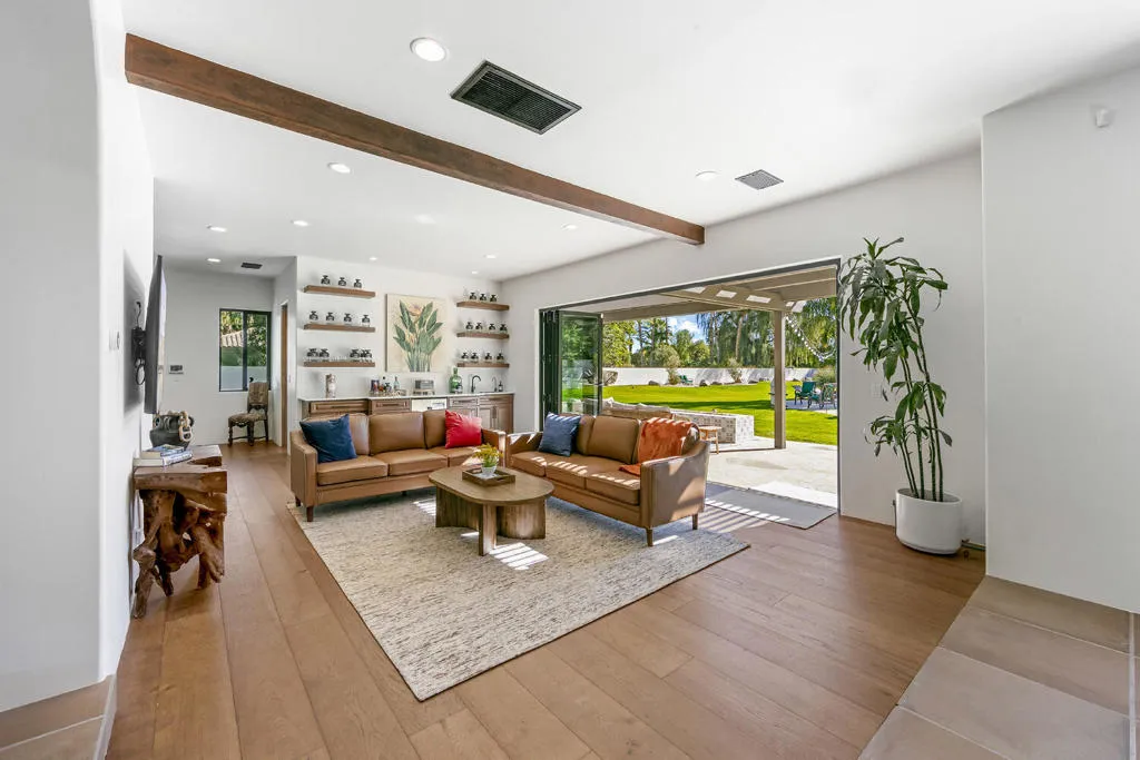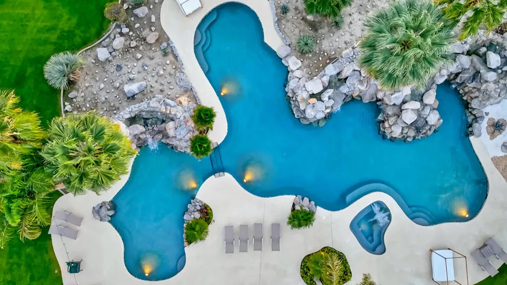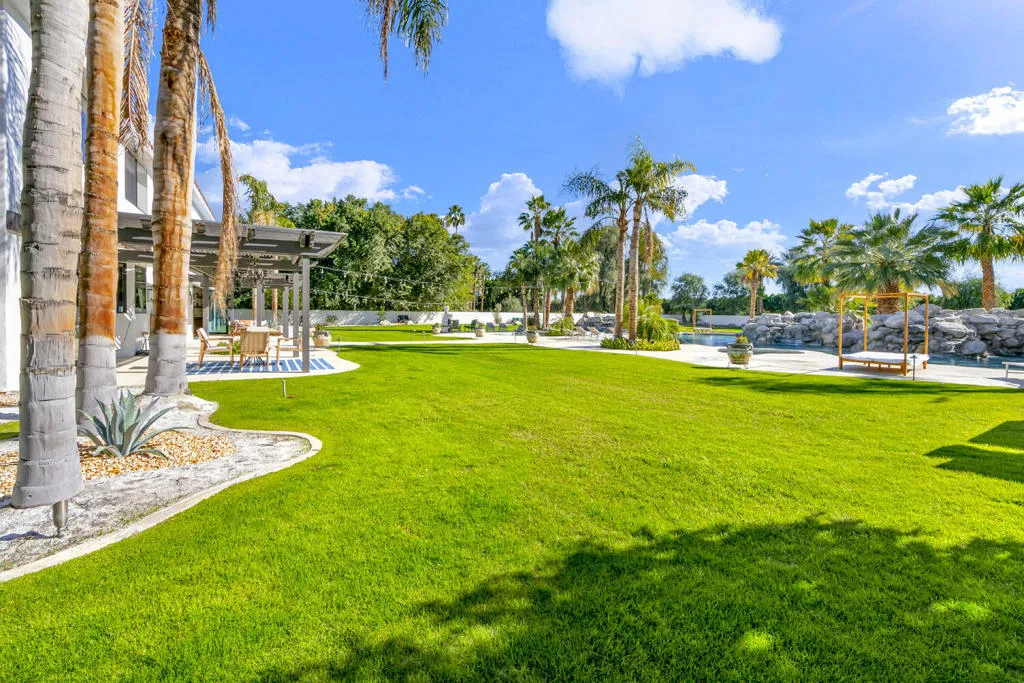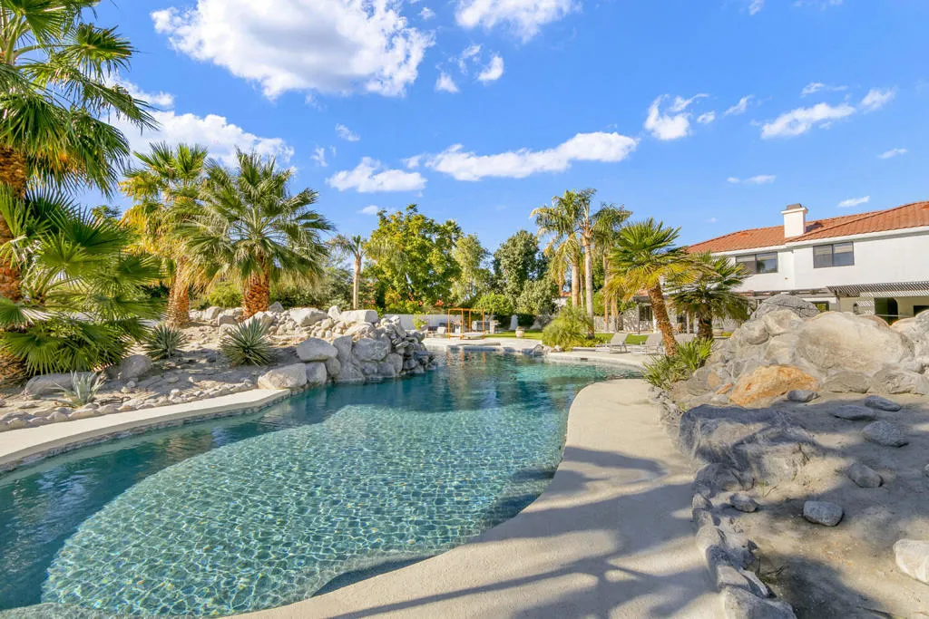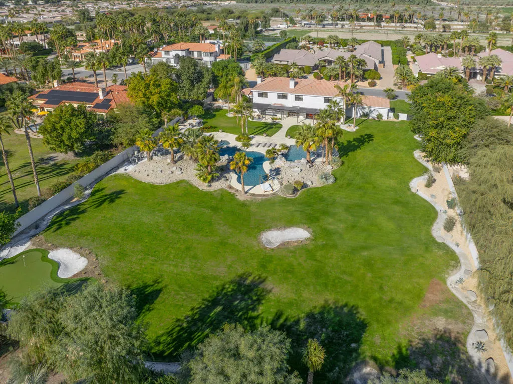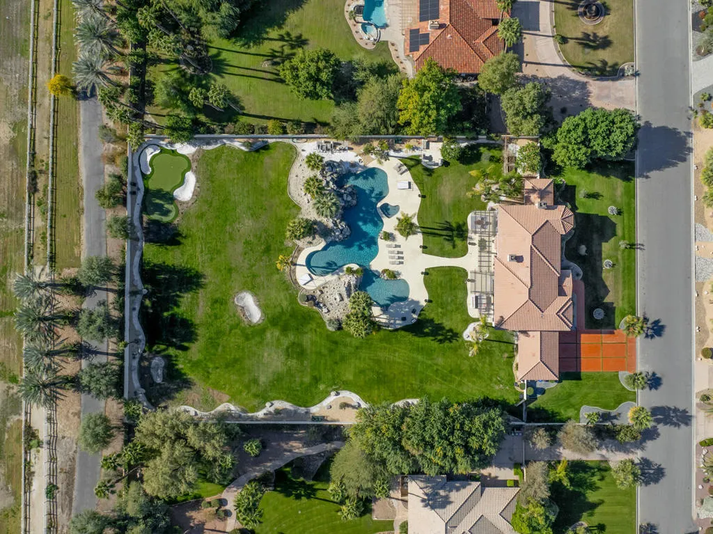 Located behind the gates of The Estates of La Quinta, 81935 Mountain View Lane presents a rare opportunity to own a true resort-caliber estate in one of the desert's most private and sought-after enclaves. Perfectly positioned near the world-class Desert International Horse Park, the Jacqueline Cochran Regional Airport, PGA West, and the exclusive Madison Club, this property offers unmatched access to elite lifestyle amenities while maintaining exceptional privacy within La Quinta. The estate is set on an expansive 1.25 acres, providing exceptional space, privacy, and the scale necessary to support its resort-style amenities and grounds. Designed for both grand-scale entertaining and everyday luxury, the estate showcases one of the Coachella Valley's largest resort-style pools, enhanced by dramatic cascading water features and expansive lounging areas. A private par-3 golf hole with crushed white Augusta-style sand bunkers creates a one-of-a-kind backyard experience rarely found in residential estates, delivering a true country club atmosphere at home.The residence has been thoughtfully remodeled with high-end finishes and architectural details throughout its six bedrooms and six-and-a-half bathrooms. Interiors feature 10-inch wide-plank European oak wood flooring, imported Spanish tile, and Carrera white marble throughout. Custom tile bathrooms, two indoor Jacuzzi tubs, and solid 8-foot alder doors elevate the sense of craftsmanship and quality at every turn. The gourmet kitchen and entertaining spaces are anchored by Wolf and Sub-Zero appliances, three wine refrigerators, a full wet bar, and a dramatic 17-foot Fleetwood-style bi-fold door that seamlessly connects indoor and outdoor living. A six-foot pass-through window further enhances the flow for hosting, while custom cast-iron A/C vents and a whole-house central vacuum system reflect the home's attention to refined detail and modern convenience. 81935 Mountain View Lane is a rare offering that blends privacy, proximity, and resort-level amenities into a single exceptional estate--an ideal retreat for those seeking the highest level of luxury living in La Quinta.