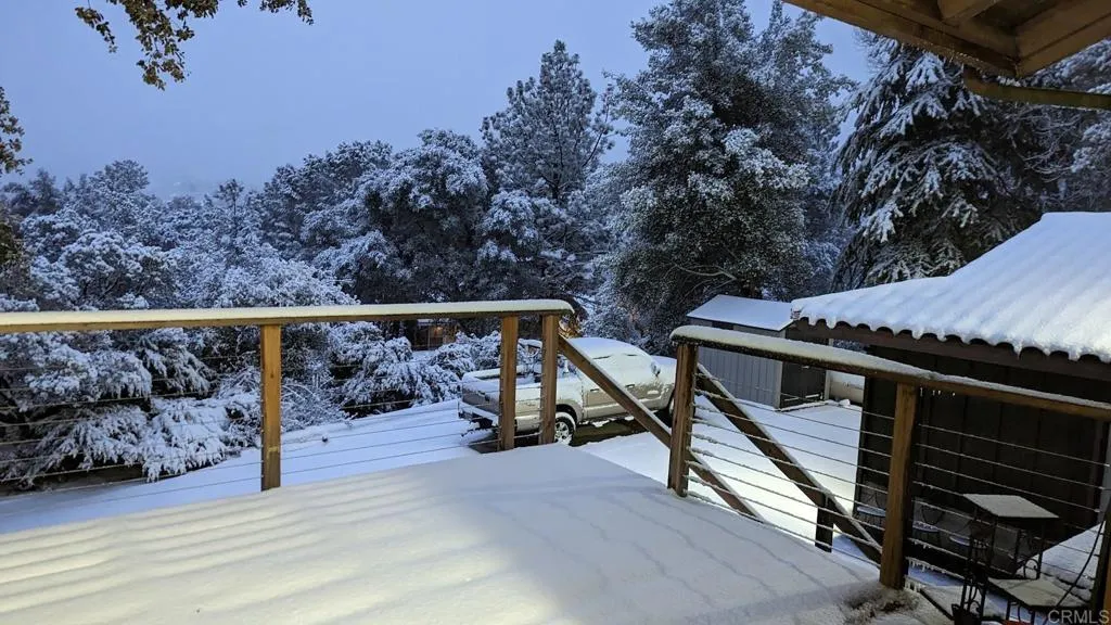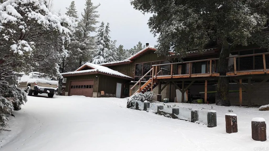 Wake up to the quiet beauty of the Laguna Mountains. Enjoy a cup of coffee on one of the many decks of this expansive, two-story custom-built home. A mature oak tree weaves through the front deck, perfectly blending nature and structure. Light pours through the large windows of this 3,784 sqft floorplan. There are three sizable bedrooms, all with en-suite bathrooms. For convenience, the primary suite is located on the entry level next to an optional 4th bedroom or office. The formal living space features soaring open-beam ceilings and elegant built-ins surrounding the brick fireplace, while the family room offers the cozy warmth of a wood-burning stove. The large kitchen opens directly to the family room and connects to a formal dining space complete with a generous pantry. Step outside to find a peaceful sanctuary; the backyard is fully fenced and features two ponds, one of which is home to many beautiful Japanese Koi fish which are included with the home. Other notable features include a spacious 2-car garage, a separate indoor laundry room conveniently located by a ½ bathroom, a water filtration system, new flooring, and a fresh coat of paint. You can move in with peace of mind knowing there is newly wired electrical throughout. Pine Valley offers direct access to Mother Nature—a place where time slows down, wild turkeys roam, and kids still play outside. Don’t wait on this one. Come fall in love today!