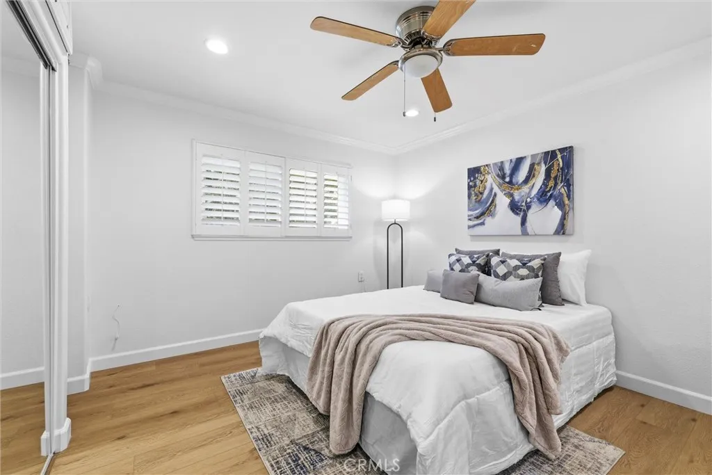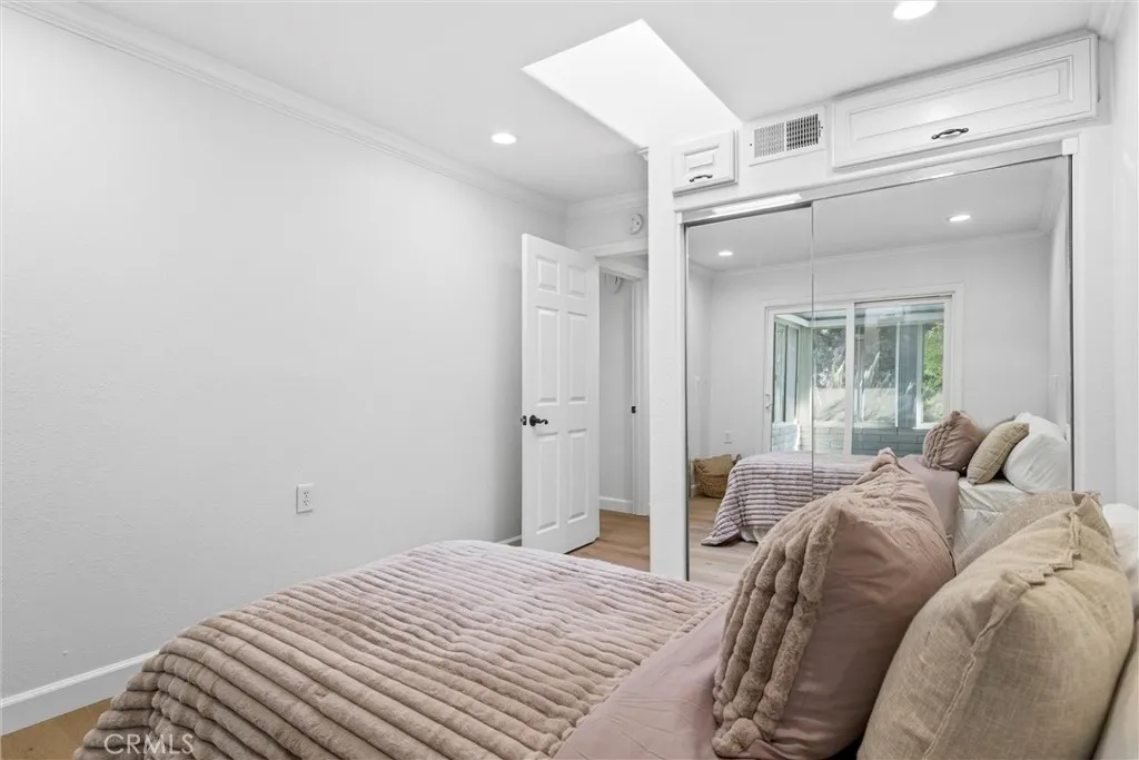 Desirable corner unit with NO STAIRS to access and NO NEIGHBORS ABOVE OR BELOW with only one common wall! Located near Gate 1, welcome to this beautifully remodeled move-in- ready Casa Linda floor plan. This home offers exceptional privacy creating a quiet, single-family–home feel. Access to the unit is conveniently located at street level via an easy-access ramp, allowing no-step entry with no stairs required. The home features 2 spacious bedrooms and 1.75 bathrooms and has been thoughtfully upgraded throughout. Brand-new light wood luxury vinyl flooring flows seamlessly through the entire home, complemented by fresh interior paint in a soft, neutral Dove White and recessed lighting throughout, creating a bright, clean, and inviting atmosphere. The expansive living room opens effortlessly to the kitchen, enhancing both functionality and flow. The fully remodeled kitchen is a true centerpiece, featuring gorgeous cabinetry, stone countertops, and an oversized peninsula that provides generous prep space, storage, and a perfect gathering area. Both bathrooms have been tastefully upgraded with cohesive, modern finishes, including a custom tiled walk-in shower in the primary bathroom and a beautifully coordinated secondary full bathroom. Each bedroom offers custom shelving and storage, maximizing both organization and comfort. Additional highlights include an in-unit stackable washer and dryer and a charming enclosed patio adorned with slate tile and a built-in planter, ideal for relaxing or enjoying indoor-outdoor living. One of the most standout features of this home is its prime location near the community gates, offering easy access while maintaining privacy. The patio and bedroom windows face mature trees and lush shrubbery—not neighboring homes— providing a peaceful, private setting with a rare single-family–home feel. Amenities include multiple swimming pools and spas, state-of-the-art fitness centers, tennis and pickleball courts, lawn bowling, shuffleboard, and scenic walking paths. Golf enthusiasts will appreciate two professionally maintained golf courses. The community also offers seven clubhouses, an 814-seat performing arts center, arts and crafts studios, a library, computer learning center, and an equestrian center. With 200+ social clubs and interest groups, plus convenient community transportation, Laguna Woods Village provides an active, engaging, and connected lifestyle tailored for vibrant senior living.