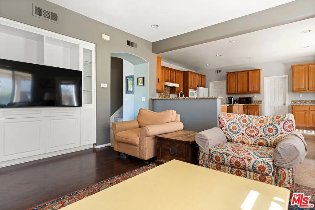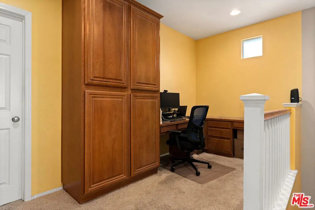 Welcome to this expansive 5-bedroom home on a desirable corner lot in Stevenson Ranch, offering the space, flexibility, and everyday convenience today's buyers are looking for. Designed to accommodate evolving needs, the well-laid-out floor plan features two bedrooms and a full bath downstairs, ideal for guests, extended family, or a private office, along with separate living, family, and formal dining areas that provide comfortable room for both daily living and larger gatherings. The expansive kitchen anchors the home with a large center island, extended granite countertops perfect for casual dining, abundant cabinetry, and an exceptionally large pantry providing impressive storage. Upstairs, you'll find three generously sized bedrooms, including a spacious primary suite, plus a built-in desk and cabinetry along the upstairs landing offering a convenient and functional workspace. The private backyard features mature landscaping with palm, lemon, and orange trees, a covered patio, built-in BBQ, and a generous cement entertaining area ready to enjoy or personalize to suit your style. Ideally positioned near Pico Canyon Elementary, parks, shopping, dining, and convenient 5 Freeway access within highly regarded Blue Ribbon schools, this is an opportunity to secure meaningful square footage and create lasting value while making it truly your own in Stevenson Ranch.