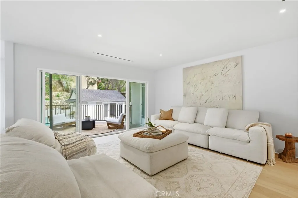Gated, grand and impeccably designed for a discerning buyer. On the wide part of Canoga Ave. just past the golf course, sits a newly remodeled home that offers a rare combination of privacy, fresh modern design and brand new upgrades. Behind a new electric gate, the home showcases a new roof, smooth stucco exterior, elevated ceilings, and wide-plank white oak wood floors throughout. The thoughtfully designed interior features three bedrooms and two spacious bathrooms, each with sleek step-in showers, and a tankless water heater for on-demand efficiency. The open concept living room in anchored with a stylish stone gas fireplace and flows effortlessly to the dining area, kitchen and rear patio. The chef’s kitchen is equipped with premium KitchenAid and Bosch appliances including double ovens, eight burner gas range top with pasta pot filler, microwave and French door refrigerator. The custom cabinets provide amble space for a pantry and open shelving to display your finest serve ware. The view from the large slider that frames the sparkling pool and flat, grassy backyard are perfect for entertaining or everyday relaxation. The rear patio is finished with durable, low-maintenance Trex decking, while the front lounge area welcomes you with a tranquil fountain. Additional highlights include motion-sensor property lighting, a Ring security camera system, indoor laundry in hallway, a paved parking pad in front, and an extra-long driveway leading to a converted garage space not included in the square footage, ideal for a home office, gym, studio, or easily converted to an ADU. A rare blend of style, privacy, and versatility in a prime Woodland Hills location.