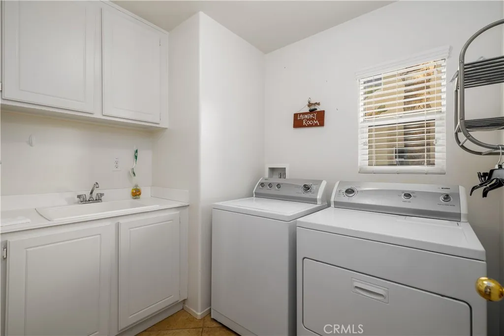 Welcome to this lovely family home. As you enter the foyer you are greeted with vaulted ceilings, a formal living and dining room then continue on to the open family room centered with cozy fireplace, and connected to the large gourmet kitchen. There is a large center island, granite counters and stainless steel appliances. There is ample cabinetry and pantry storage. This floor plan offers 4 bedrooms plus open loft area upstairs, 3 full bathrooms. One bedroom and full bath are located on the main level including the laundry center with soaking sink. Upstairs offers 3 bedrooms including the primary, another full bath and the primary bathroom with dual vanity sinks, separate tub and shower and closets. The garage is everymans dream with a flat driveway, 3 car parking storage and 2 auto metal doors. There is abundant storage cabinetry included. This home is on a cul de sac location and withing walking distance to the park. Both front and rear yards are low maintenance landscaped. The rear yard has block wall fencing in back and nice concrete patio area with sun coverage.