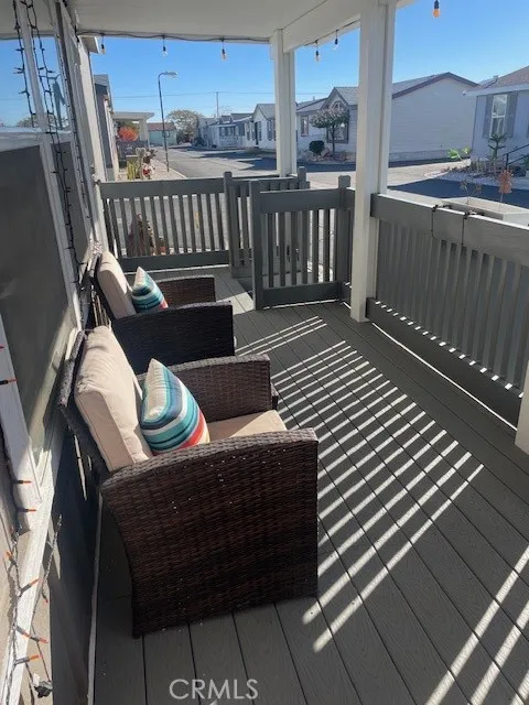 Beautiful 2021 AMERICAN FREEDOM home in Mountain View Villas GATE SENIOR COMMUNITY. This comes with a 2 CAR GARAGE with door opener, exhaust fan & long driveway for extra parking with additional concrete. Sellers have added alumawood covered deck at the front of home to enjoy the view with fencing around deck for added privacy. Seller has added power outlets here and front hose bib for easy watering. VERY spacious living room with built in niches for your special accessories & pictures. Open kitchen features a bar to accommodate extra seating and still can fit full dining table here too! Don't miss the walk in pantry with added shelves to storage all your goodies. The huge laundry room has sensor light with direct access to garage, no steps! The Master suite is away from other bedrooms with a large walk in closet and huge bathroom suite with lots of storage. Bedrooms 2 & 3 are good size with a full bath. The rear yard is easy care with astro turf & ready for your BBQ. Gate to driveway is easy access. The home is tastefully done and is move in ready. This is all owner occupied with space rent only $786. NO HOMEOWNER DUES! Private clubhouse, pool, work out room, & full kitchen for the social functions. WE HAVE A PREFERRED LENDER.