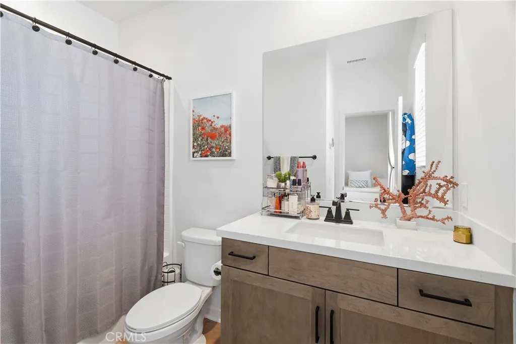 Welcome home to this stunning corner lot Skyline residence designed for real life, gathering, and growing together. This bright and beautifully neutral Lyra Plan 3 offers 5 bedrooms, 4.5 baths, a spacious loft, a downstairs den, and a rare multi-gen suite with its own private entrance, perfect for extended family or guests. From the moment you step inside, you’ll feel how open and welcoming this home is. Luxury vinyl plank flooring, recessed lighting, quartz countertops, and a custom built-in electric fireplace add warmth and style throughout. The open concept layout flows effortlessly, making everyday living and entertaining feel easy and connected. At the heart of the home is a gorgeous chef’s kitchen that overlooks the dining area, family room, and backyard. Featuring upgraded white quartz countertops, a timeless tile backsplash, warm brown shaker cabinetry, stainless steel appliances, a farmhouse sink, and a walk-in pantry. Just off the kitchen is a thoughtfully designed guest wing with its own bedroom, full bath, and additional living space. A flexible downstairs den near the entry offers the perfect spot for a home office, playroom, or second living area. Upstairs, you’ll find a large open loft, a well appointed laundry room with plenty of storage, and the remaining bedrooms, one with its own en-suite bath. The private primary suite is a true retreat, complete with peek-a-boo mountain views and sparkling city lights at night. The spa-like bathroom features dual sinks with white quartz countertops, an oversized soaking tub, a tiled walk-in shower, upgraded flooring, and a generously sized walk-in closet. Step outside through expansive California doors to a backyard that truly completes the home. Perfectly manicured and designed for indoor-outdoor living, it offers a covered California room with a drop down screen, a built-in fire pit, spacious side yards, and plenty of grassy space for kids and pets to play. Additional highlights include direct access to a two car garage with ample storage and close proximity to Skyline’s sought-after amenities. Enjoy Basecamp, and the Lookout, playgrounds, clubhouse, resort-style pool and spa, splash pad, BBQ areas, and a glass-enclosed gym, all set against breathtaking valley views. Miles of hiking trails, nearby shopping, and easy access to the 14 freeway make everyday life seamless. This is more than just a house, it’s a place to create memories, and grow for years to come.