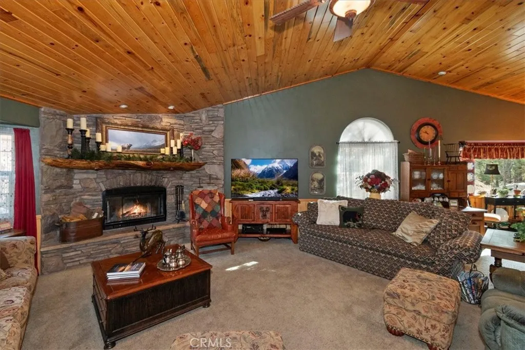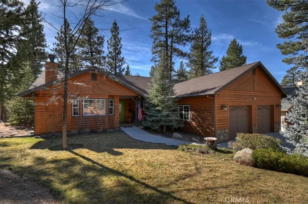 Public Remarks: Experience the warmth and mountain charm of this beautifully maintained Castle Glen home, ideally located near everything Big Bear has to offer. Designed for convenience and accessibility, this property features a rare flat, level entry and a desirable single-level floor plan. As you enter, you are welcomed into a spacious open great room highlighted by knotty pine tongue-and-groove ceilings, classic wainscoting, and rich wood accents throughout—creating a warm, inviting atmosphere. The open-concept design seamlessly connects the living area, kitchen, and dining space, making it ideal for both everyday living and entertaining. The well-appointed kitchen offers abundant knotty pine cabinetry and a large center island, perfect for casual meals and gatherings. Cozy winter evenings can be enjoyed around the gorgeous wood-burning fireplace, a true focal point of the living space. The spacious primary bedroom provides direct access to the rear deck and features a walk-in closet and a private ensuite bath. The expansive back deck spans the entire full width of the home—an ideal setting for entertaining, relaxing, and enjoying the fresh mountain air. Extra amenities include solar panels, low-maintenance landscaping, and a two-car attached garage with ample space for vehicles and mountain toys. Whether you are seeking a full-time residence, second home, or investment opportunity in a short-term rental–friendly neighborhood, this lovingly maintained property is located in one of Big Bear’s most desirable communities. Put this one on your list! ______________________________________________________________________________________